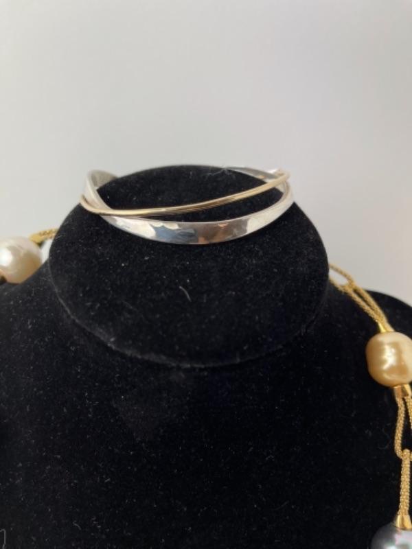 Bracelet is Sterling silver and gold plate measuring 2.25” on inside