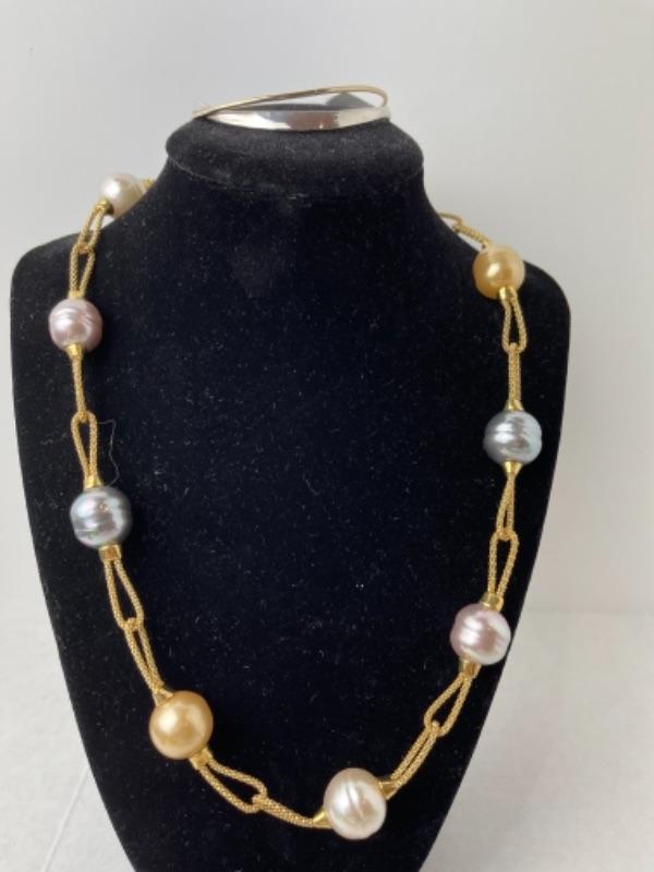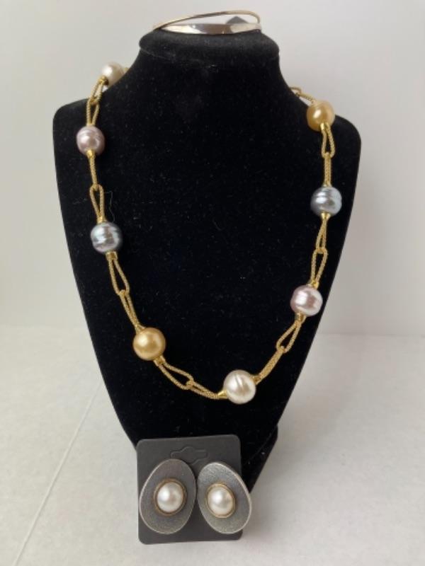 K735 Sterling Mabe Pearl Necklace, Earrings, Bracelet