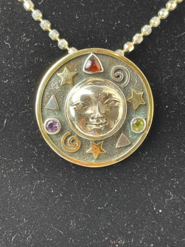 K736 Sterling 14k Yellow Gold Moon face Necklace Earring Set