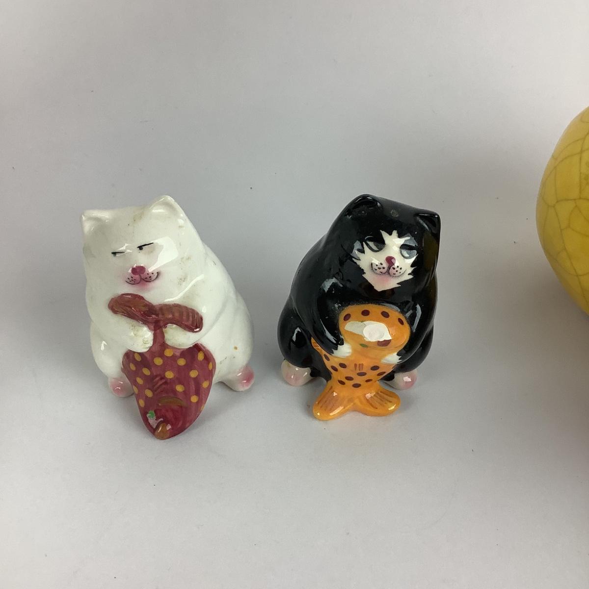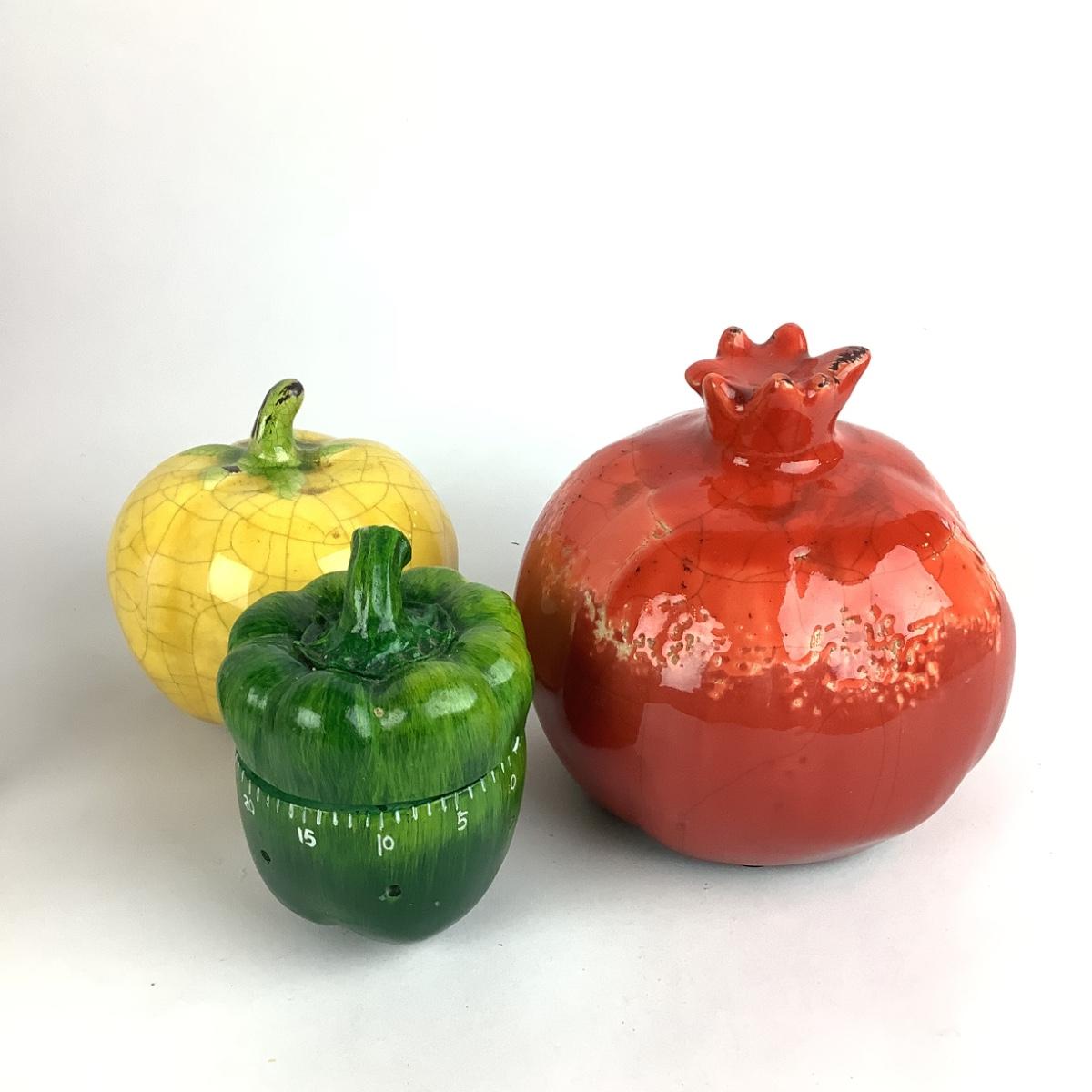 Vegetable green pepper timer with vegetable ceramic decor with salt and pepper cat (with chips)