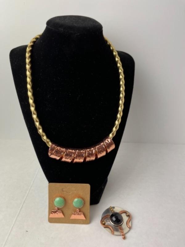 K740 Gold & Copper Costume 3pc Jewelry Set