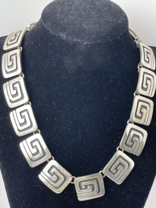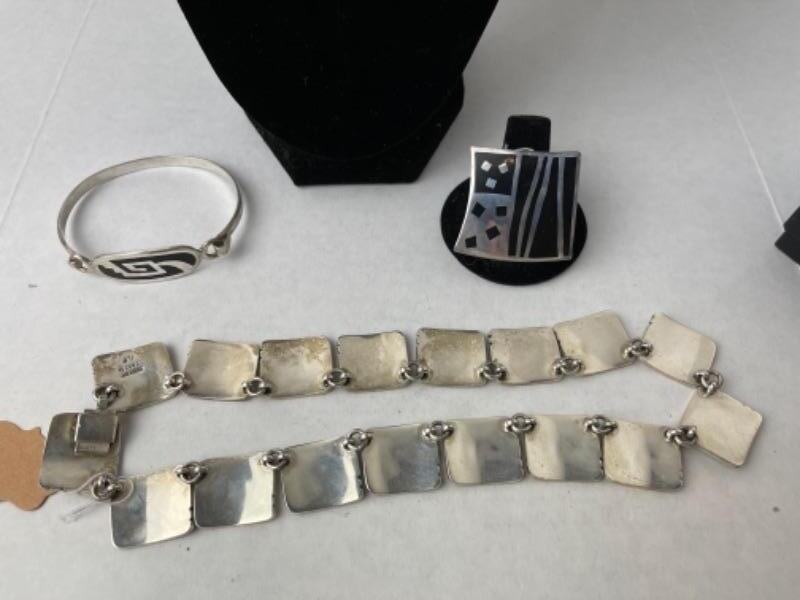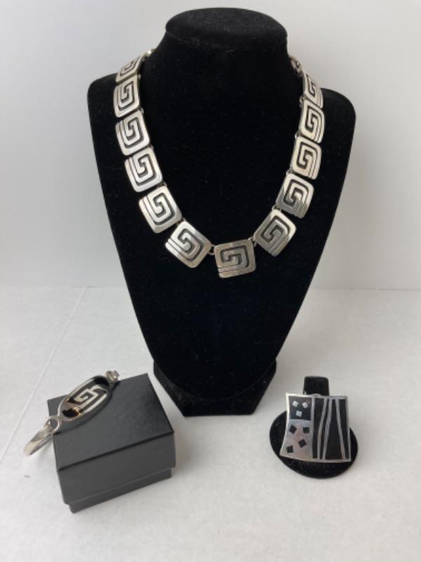 K741 Sterling TAXCO Mexican Necklace with Pin and Bracelet