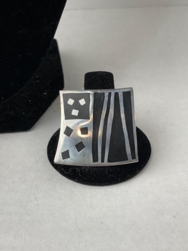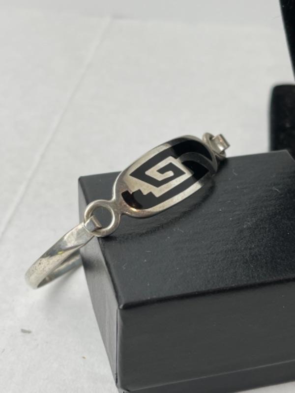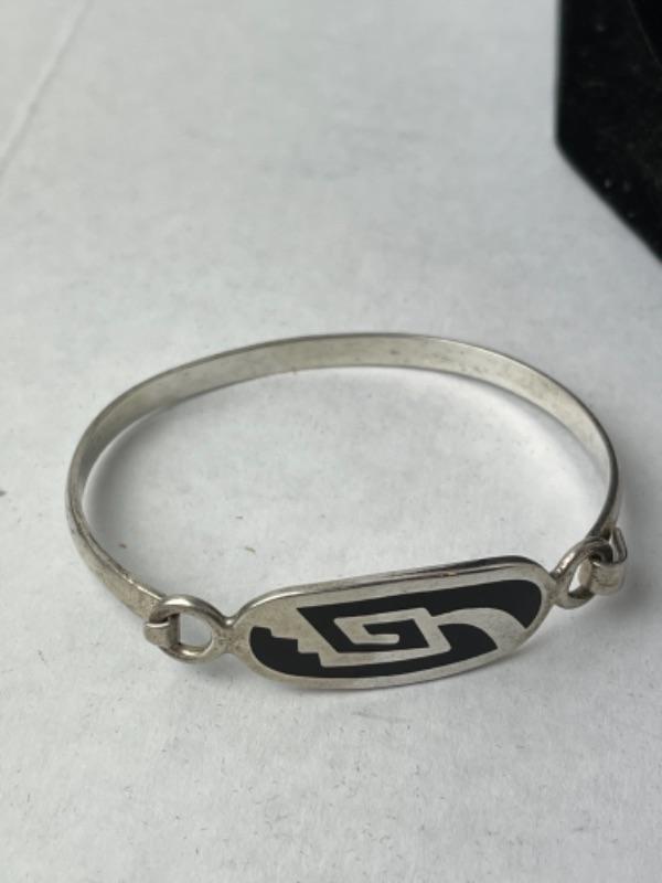 Bracelet measures 2.25” inside and pin measures 1.25 x 1.5” and marked Geslicki sterling