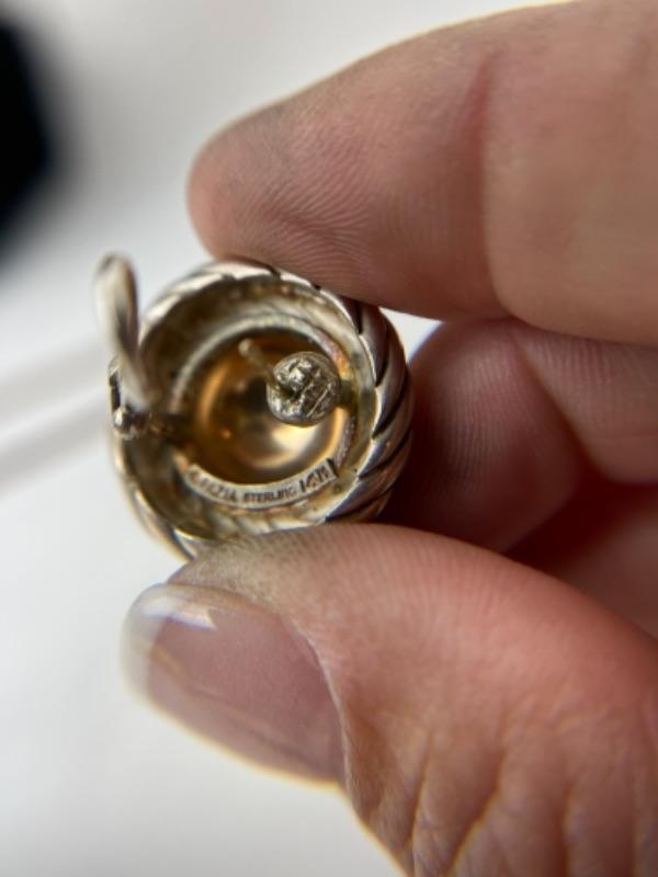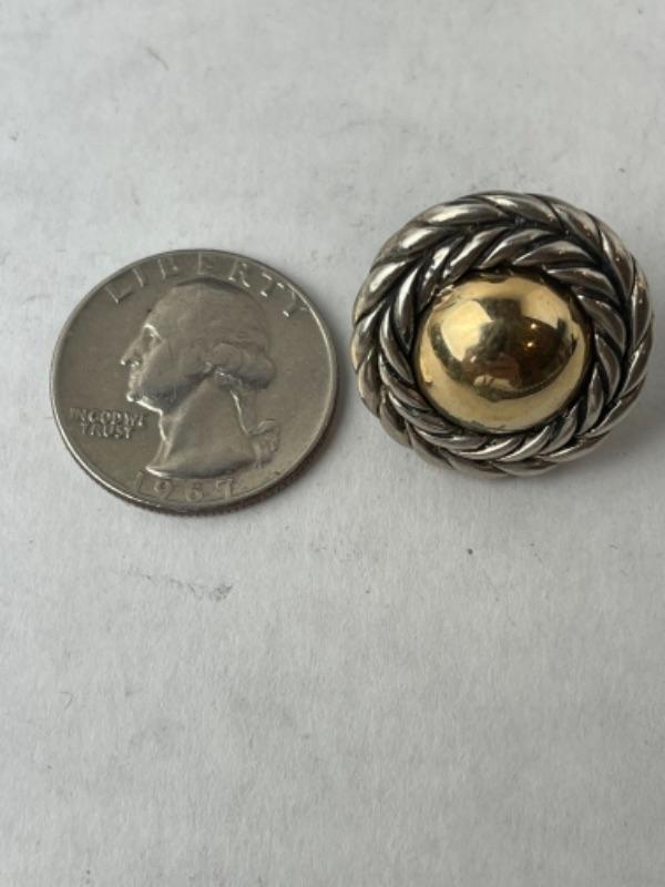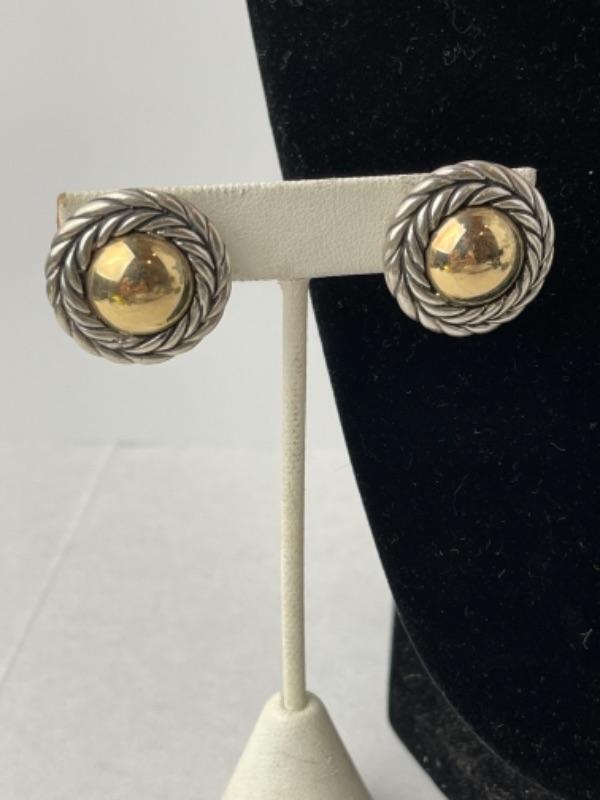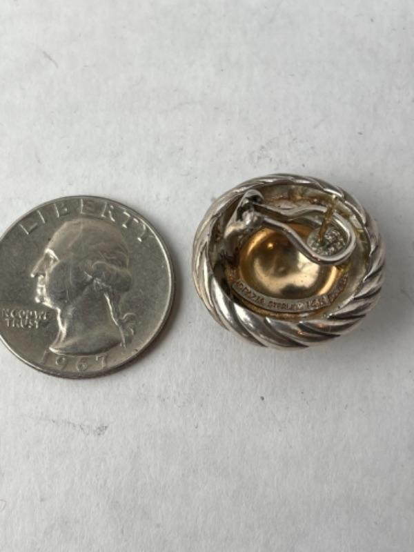 Earrings are 14k and sterling pierced. Measuring approximately 1” round and marked Pazia sterling 14k on inside