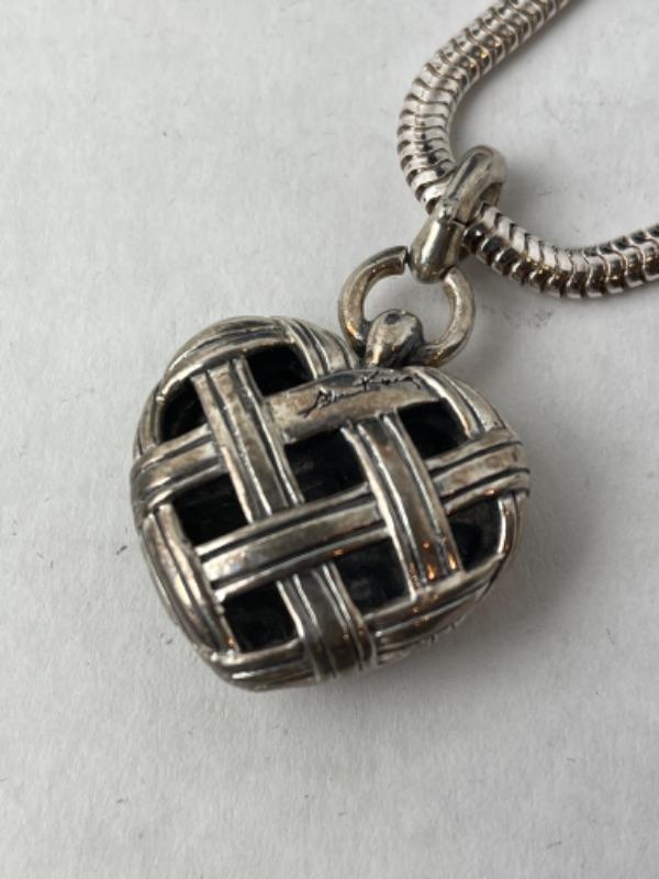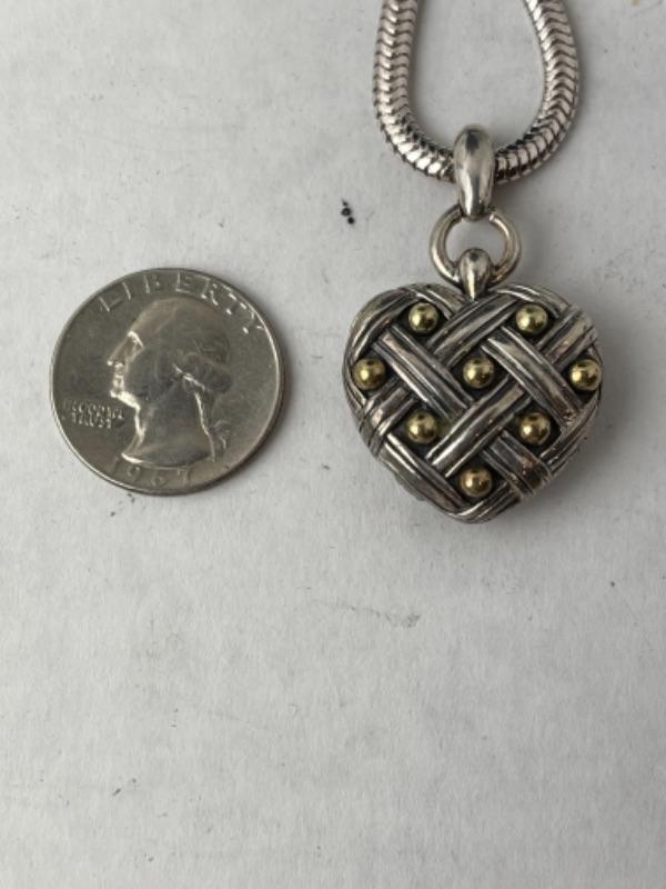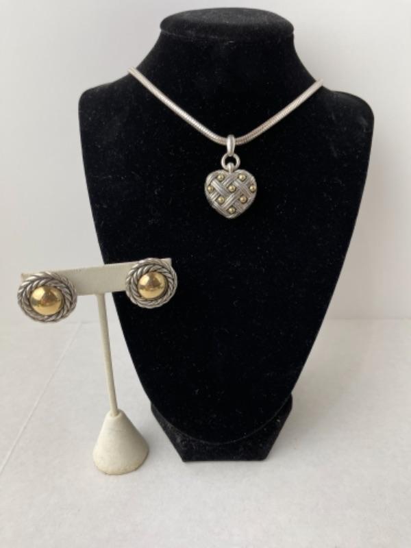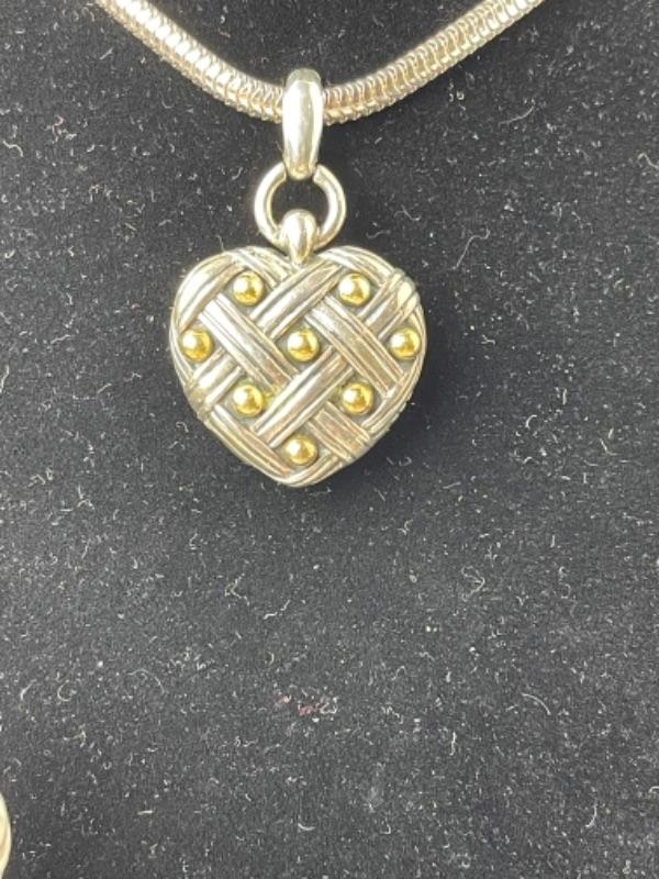 K743 Sterling 18k, 14k Ann King Basketweave Heart Pendant and Earrings