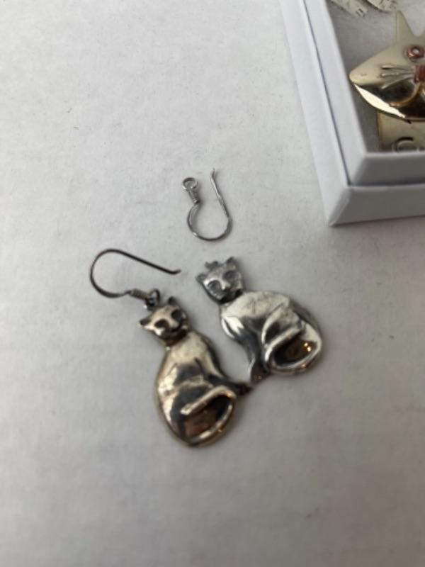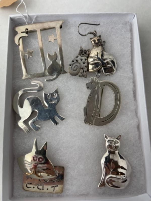 K754 Sterling Silver 6 Cat Pin and Earrings Set