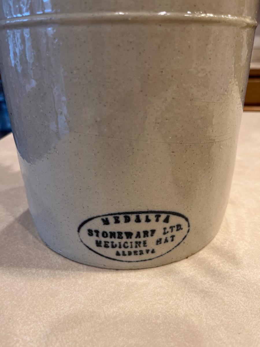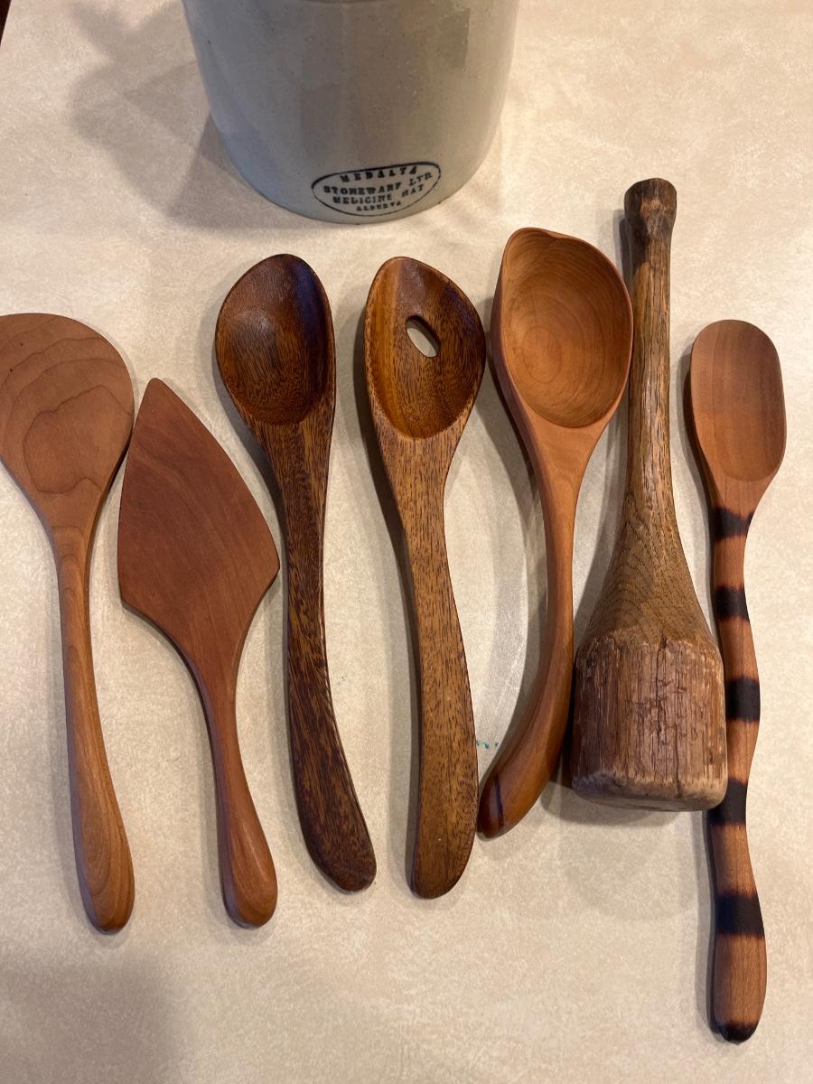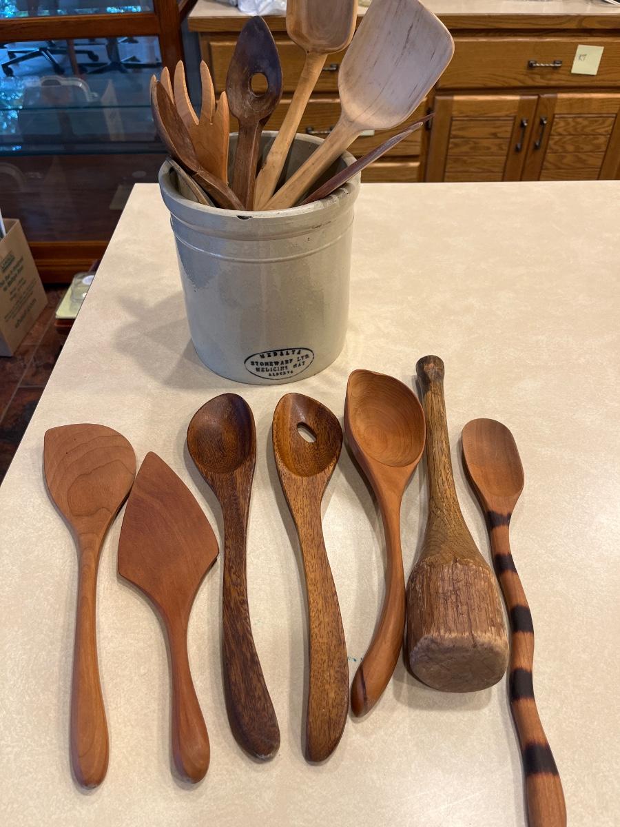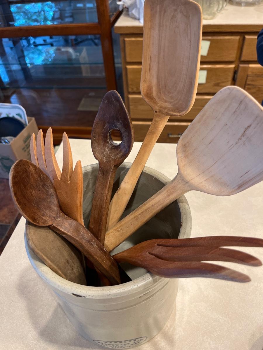 K76- Advertising crock with wooden utensils