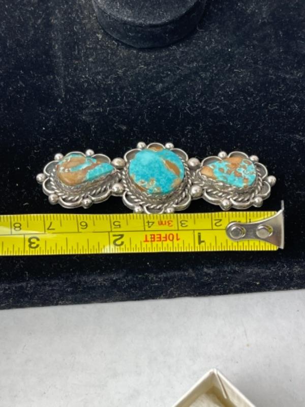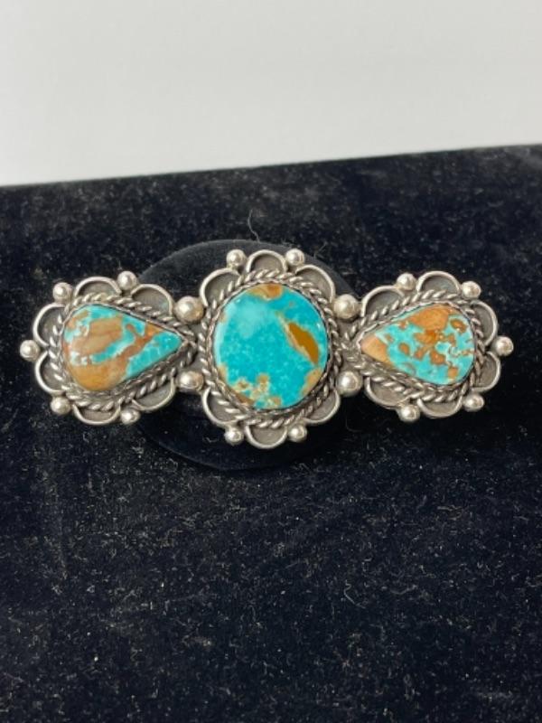 K762 National Pilot Mountain Turquoise 3 Stone Sterling Pin