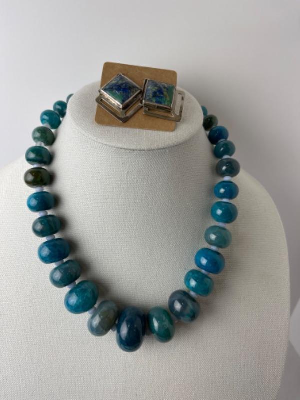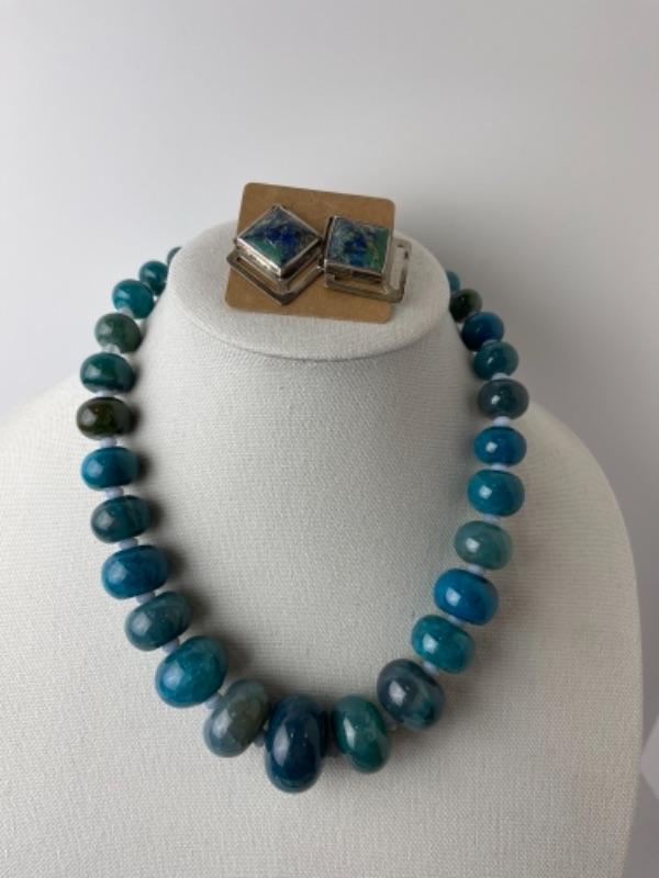 K766 Teal Blue Apatite 20” Necklace by Amy Kahn Russell with Earrings