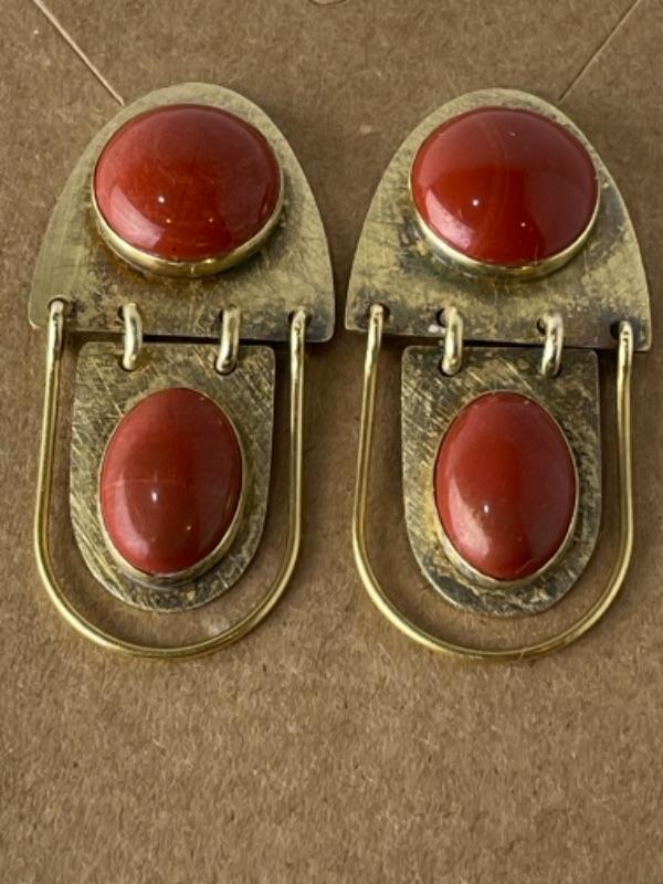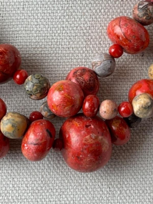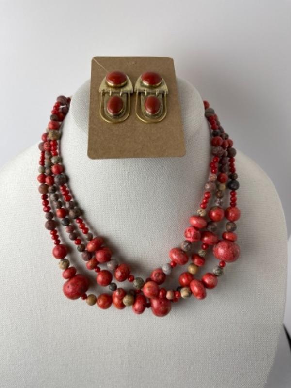 K770 Sterling 3 Strand Coral Necklace with Carnelian Earrings