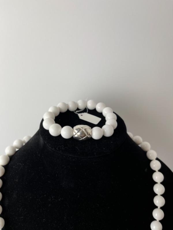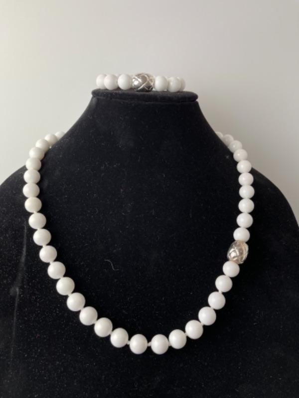 K771 Sterling White Glass Beaded Necklace Bracelet Set