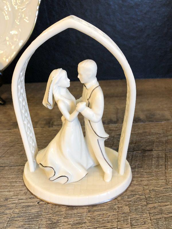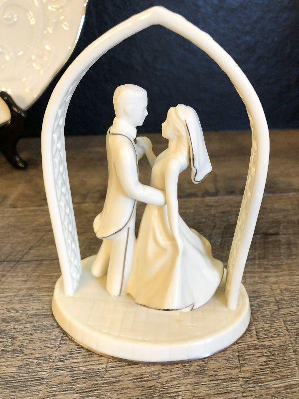 Lenox Anniversary Plate and Wedding Topper. Please refer to photos for size and condition. Have fun and happy bidding.