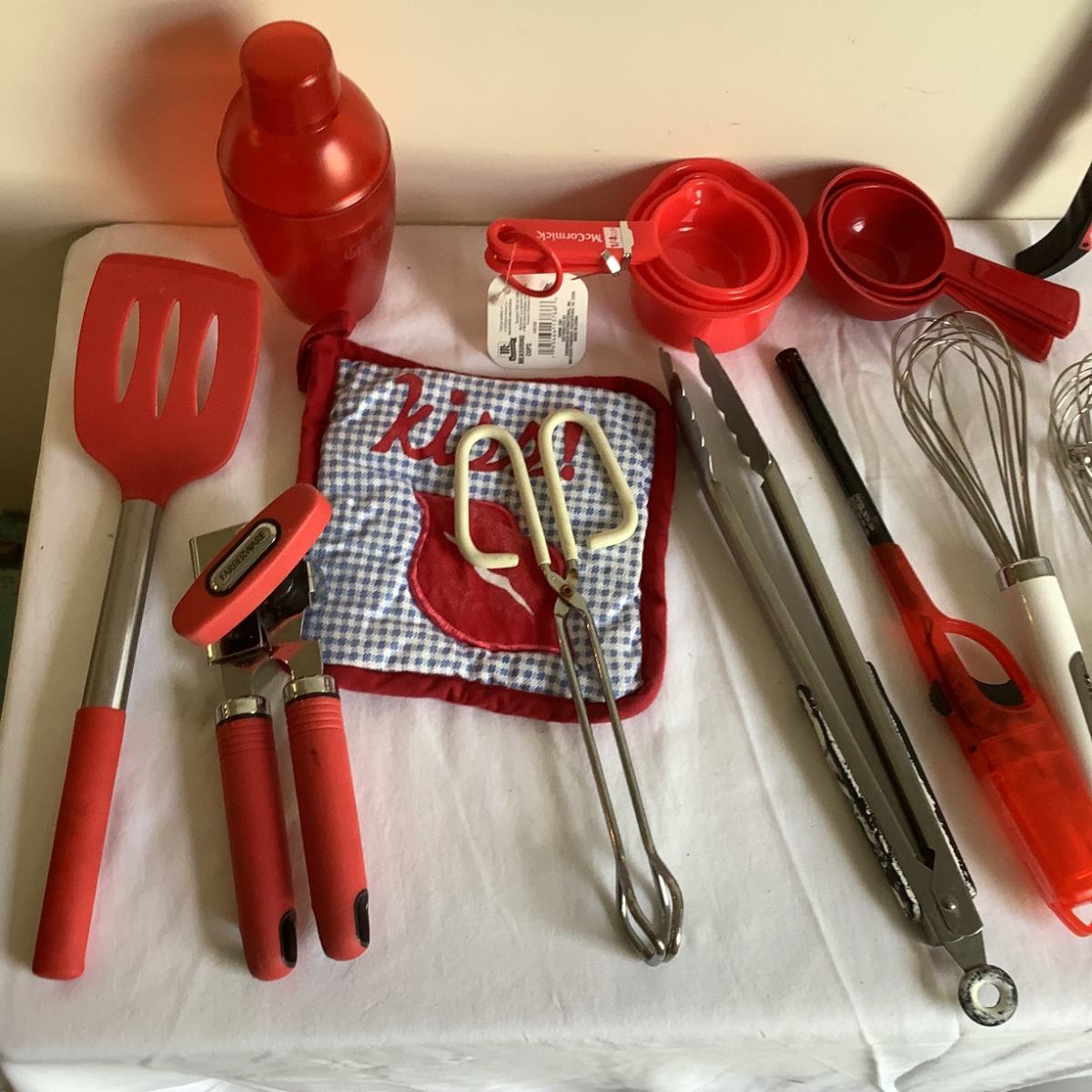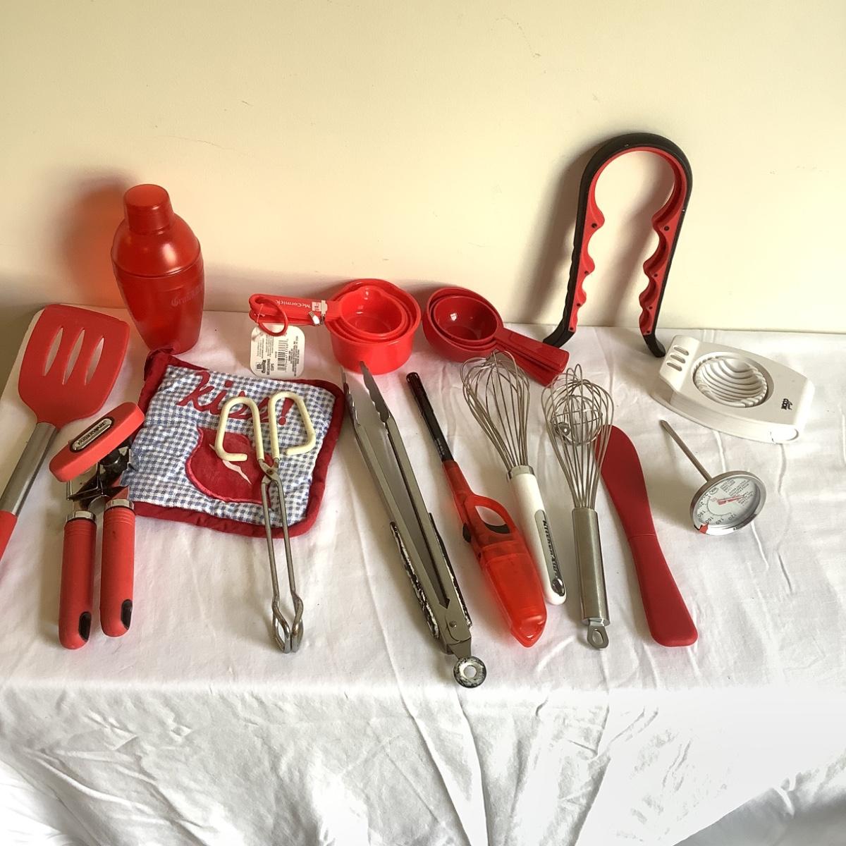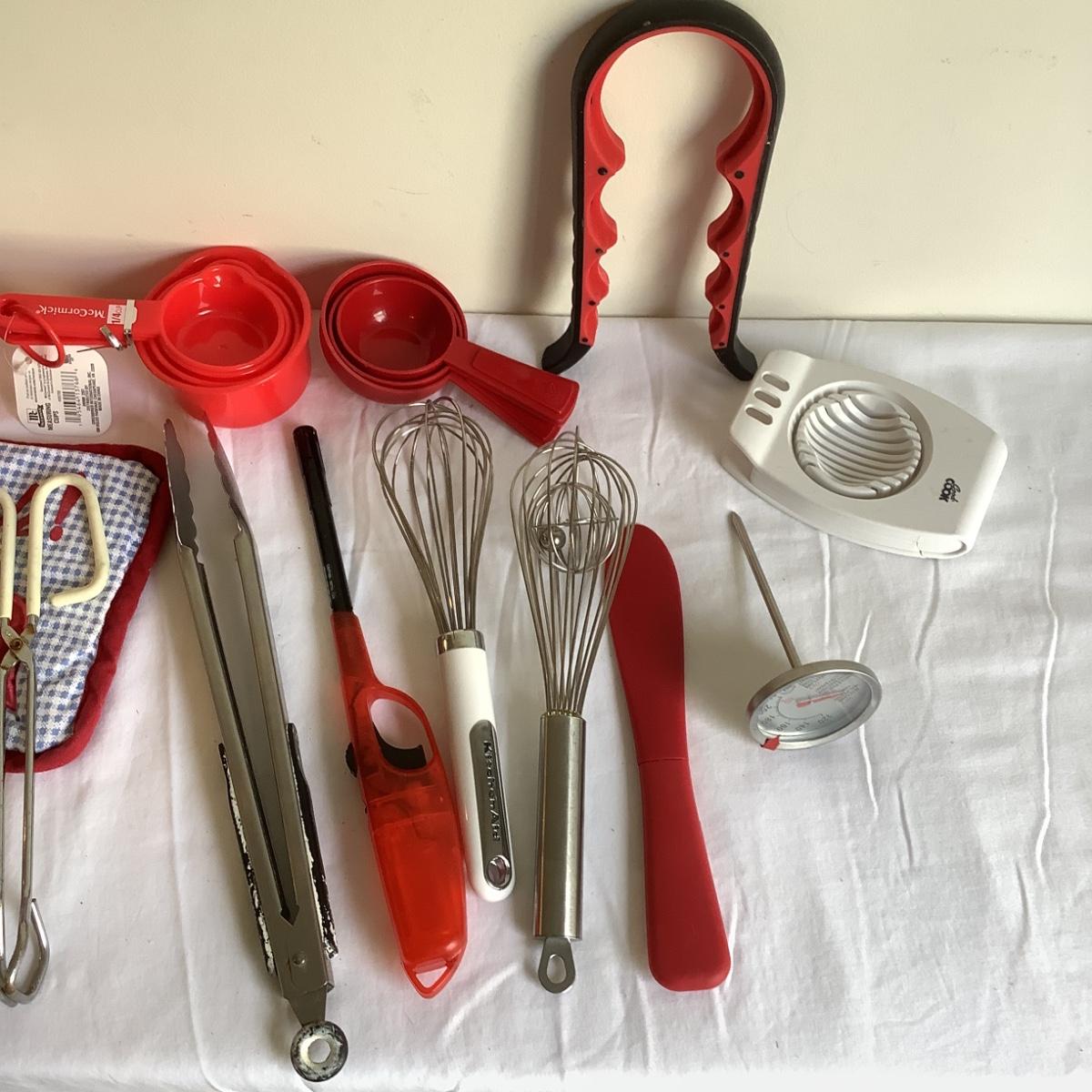 K8059 Large Lot of Assorted Red and White Kitchen Utensils