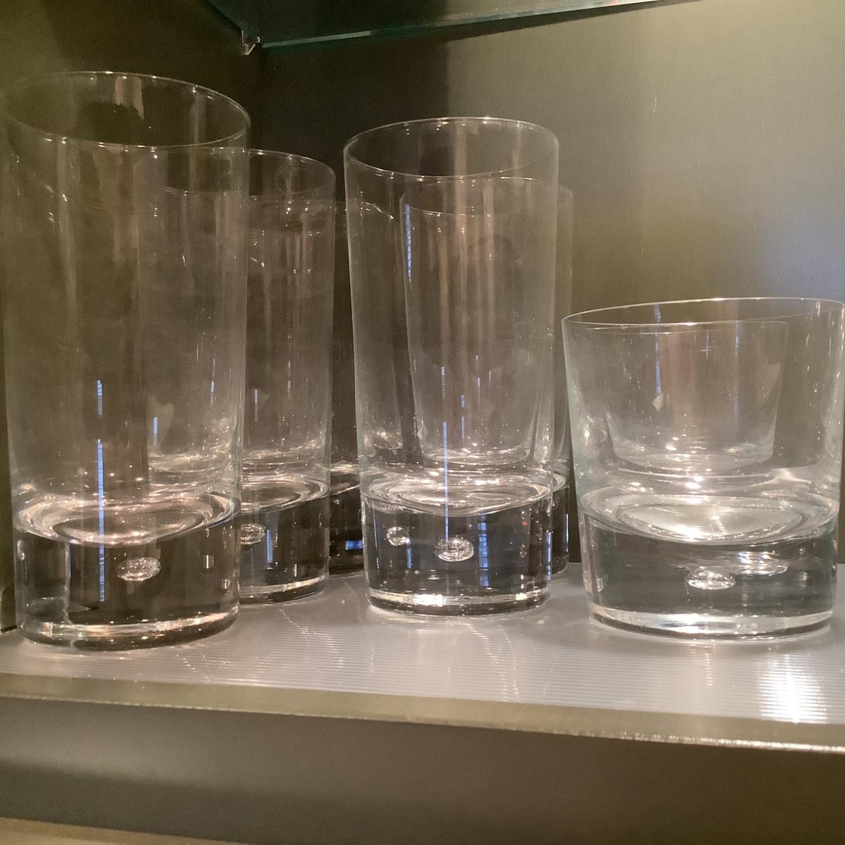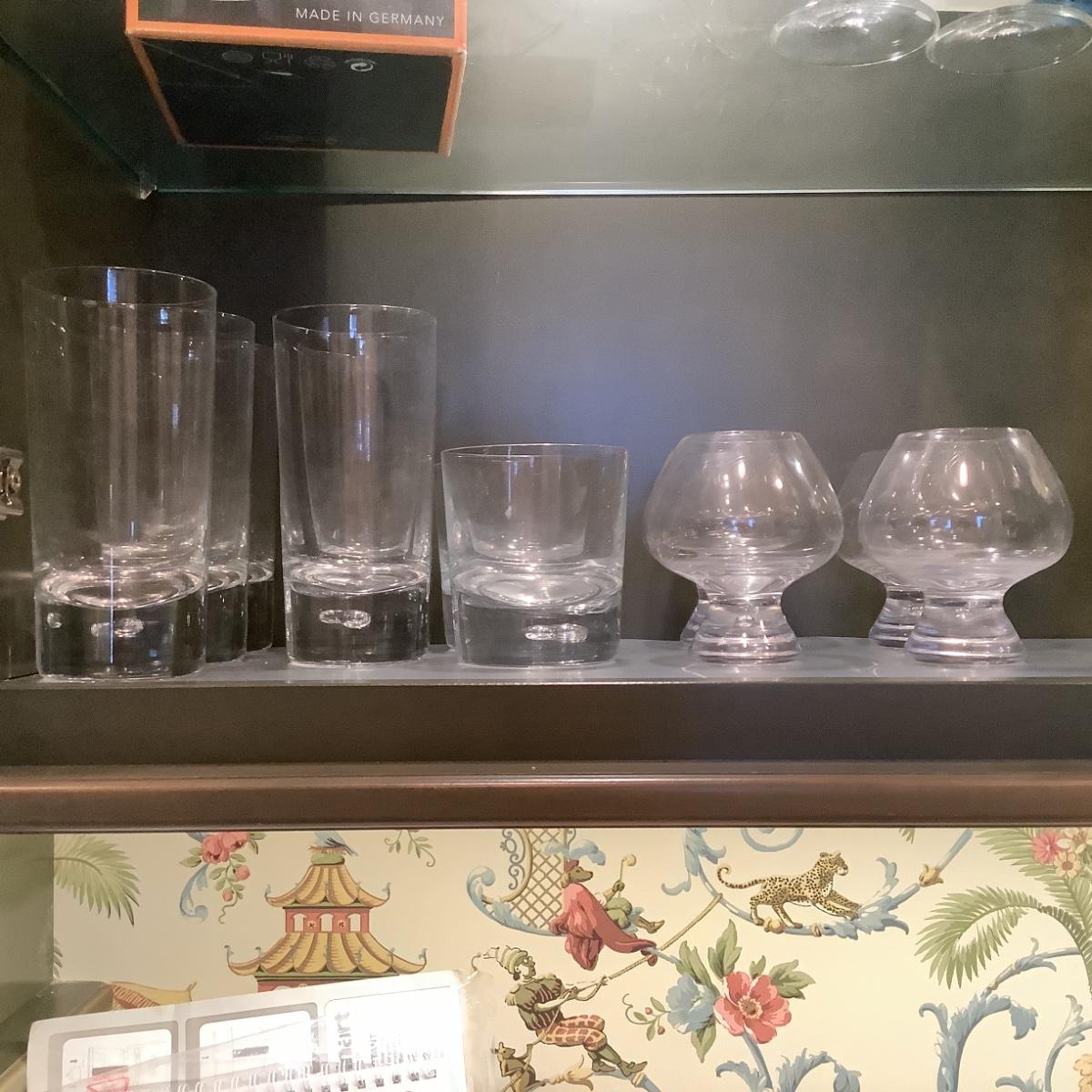 5 highball glasses, 2 lowballs, 5 brandy glasses