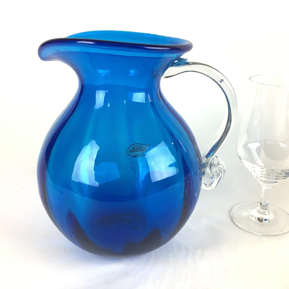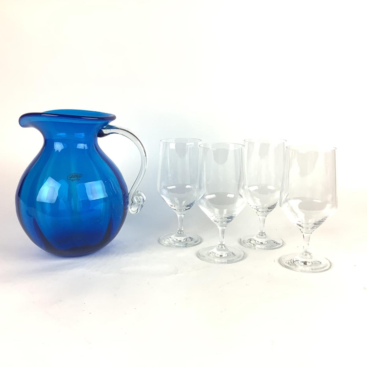 K821 Large Blue Glass BLENKO Pitcher with SCHOTT ZWIESEL Icetea Glasses