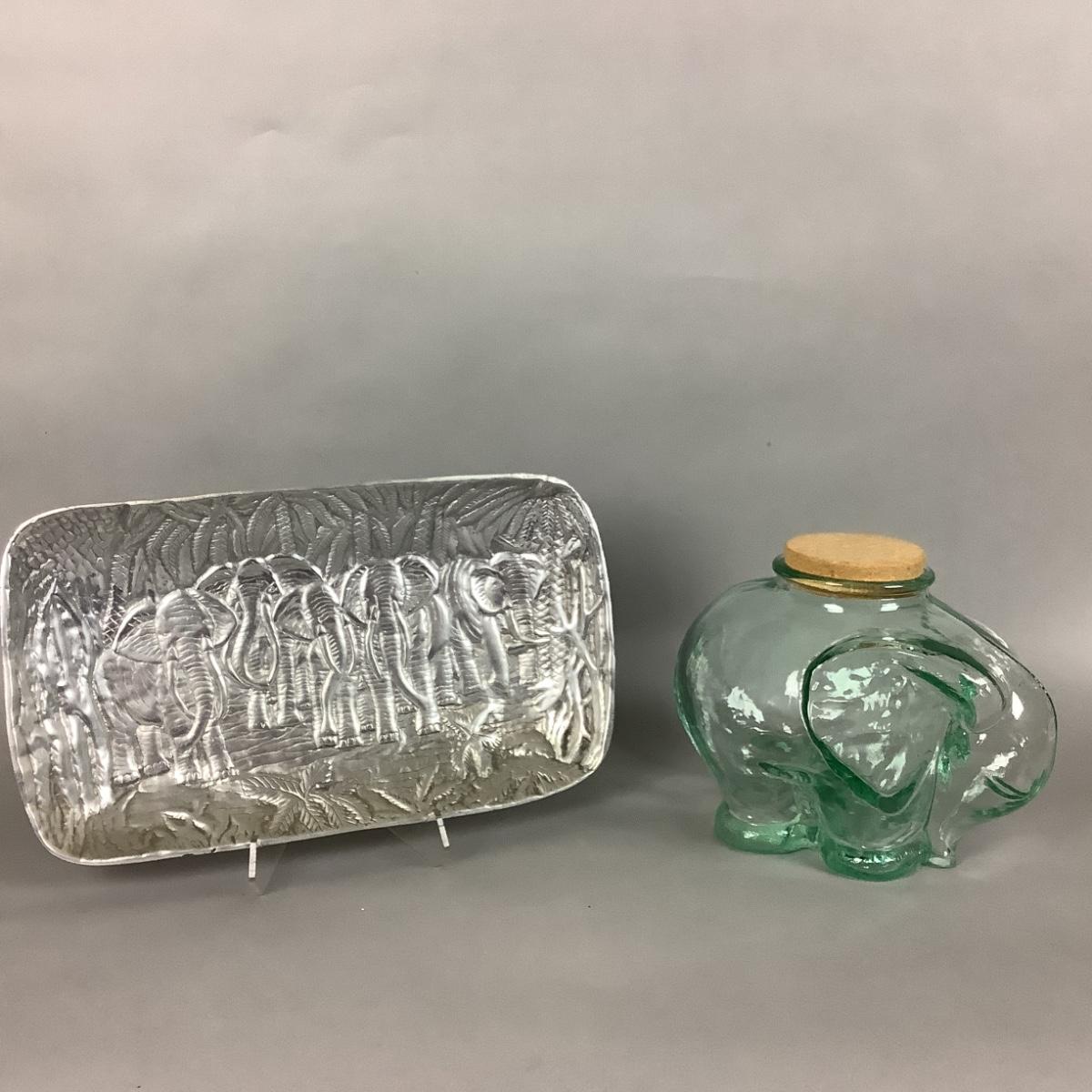 K8219 Aluminum Elephant Tray & Glass Elephant Jar with Lid