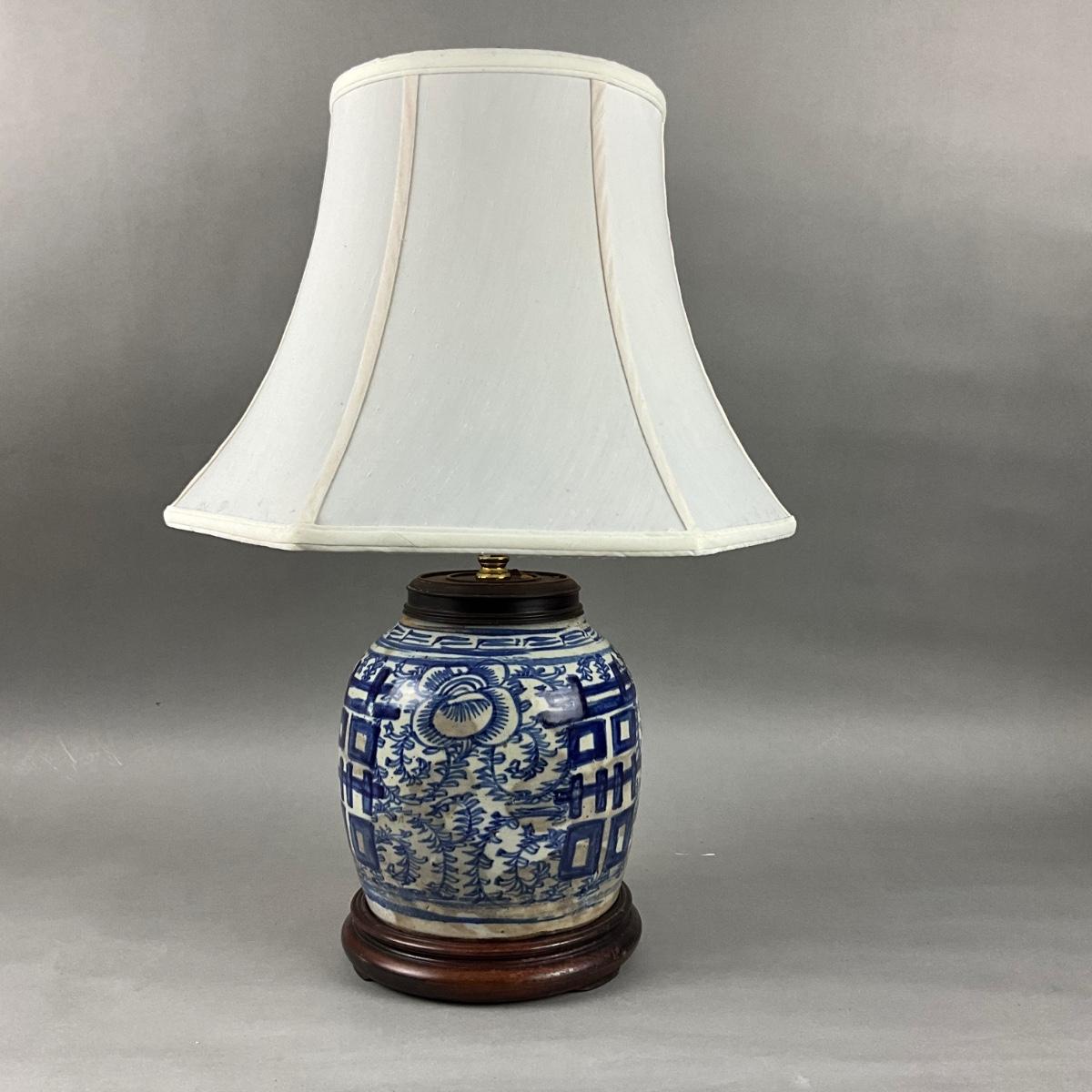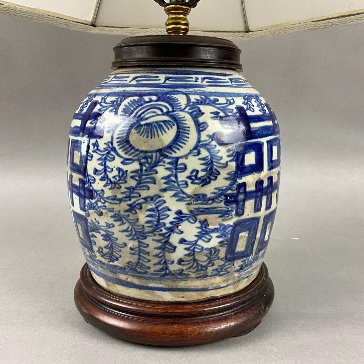 K823 Antique Blue & White Chinese Ginger Jar Lamp