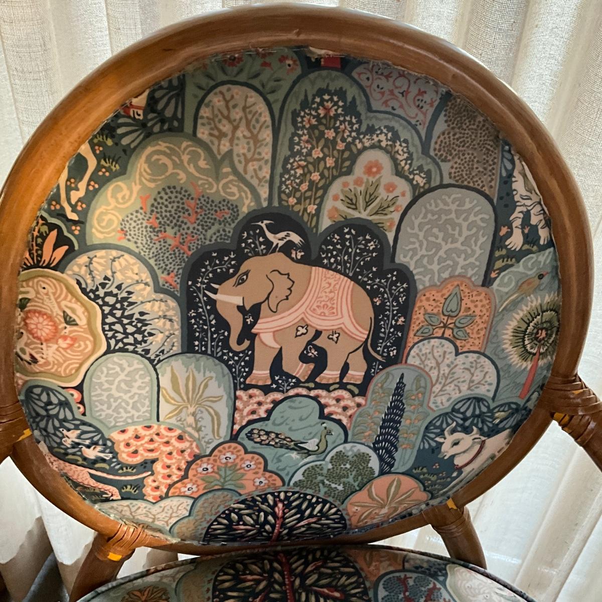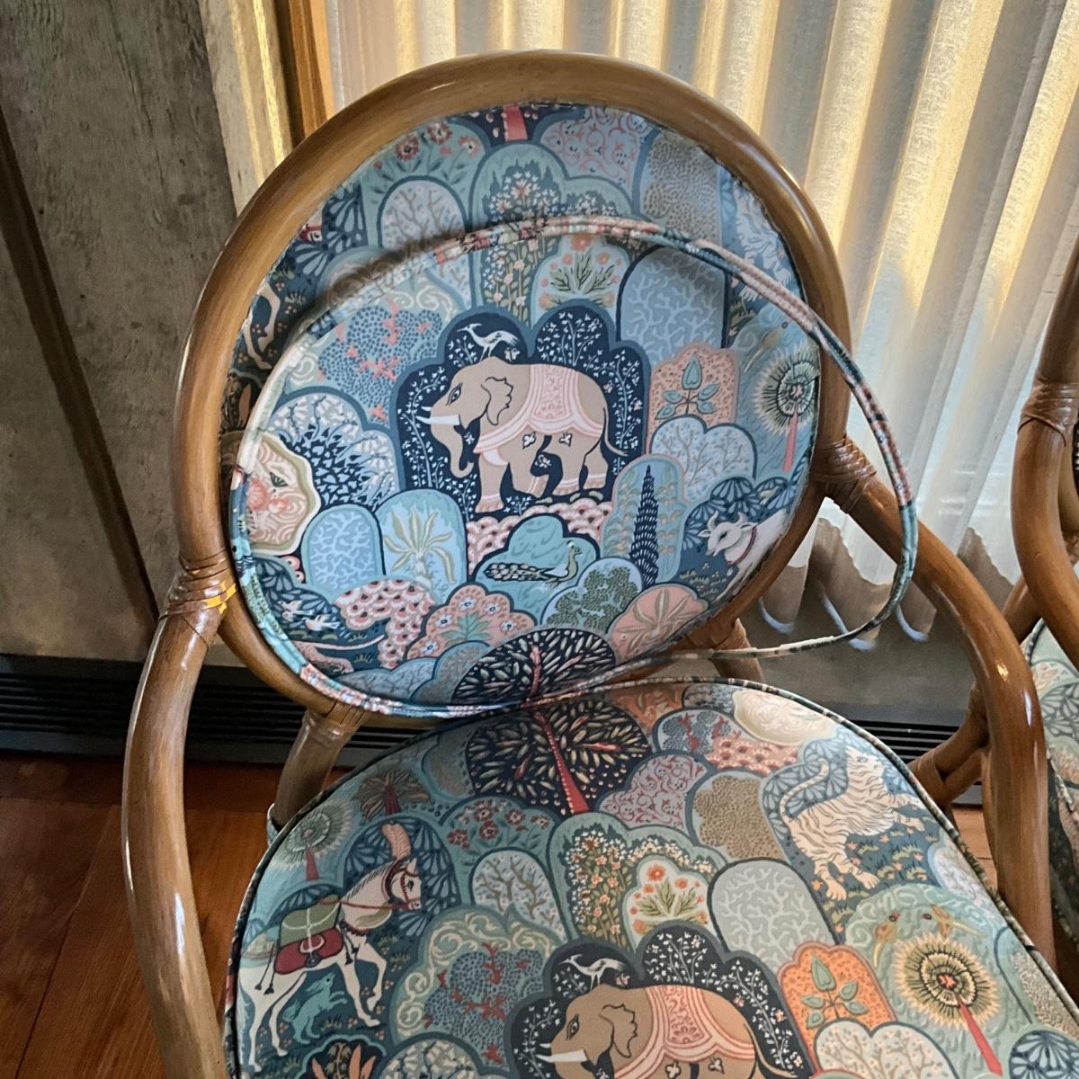 Light fading on the upholstery which is an elephant design in a wax cloth