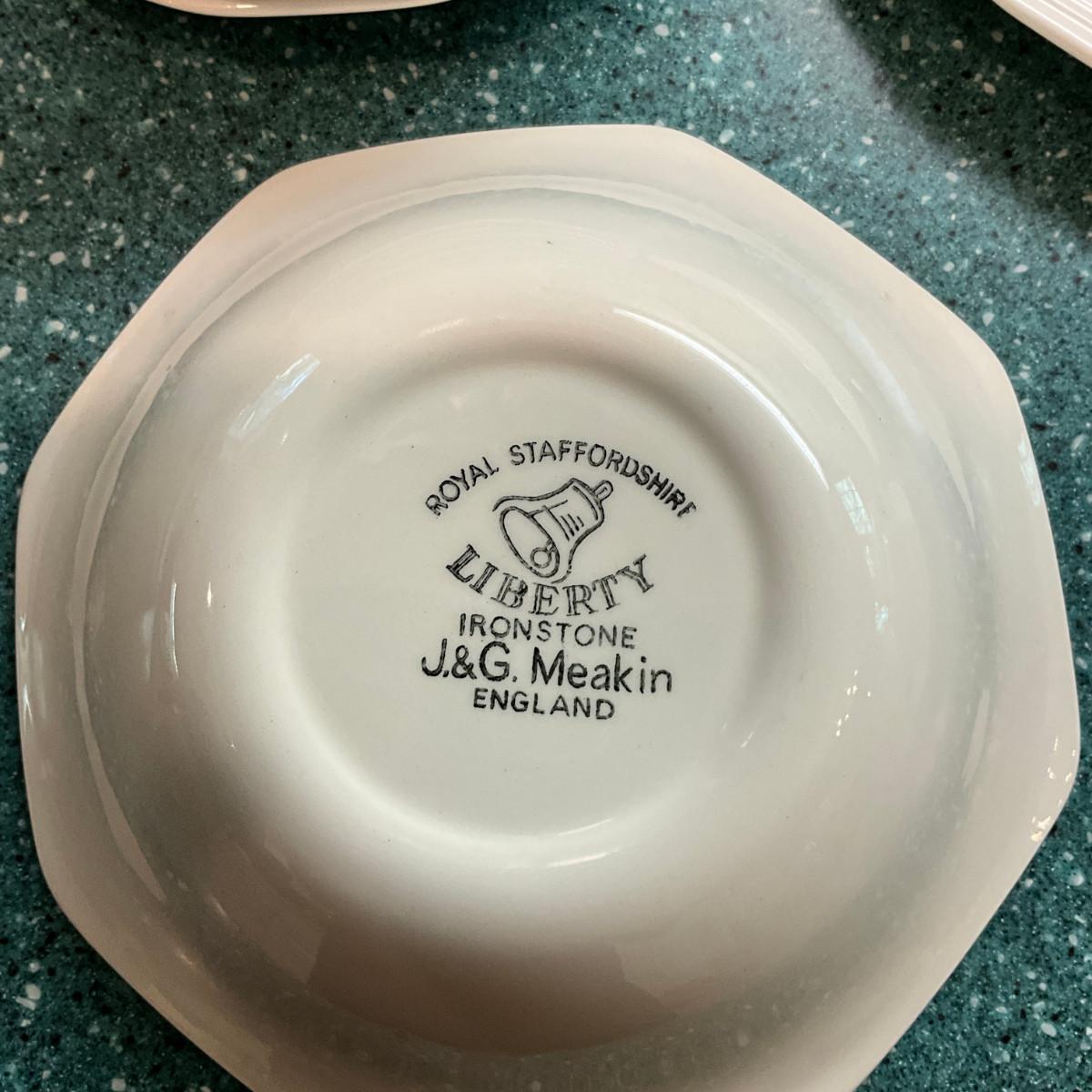 Includes white staffordshire: 6 saucers, 4 tea cups, 4 bowls