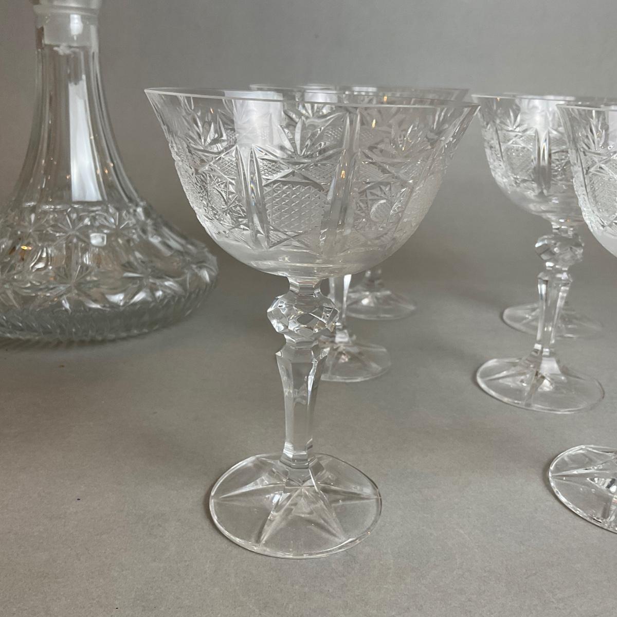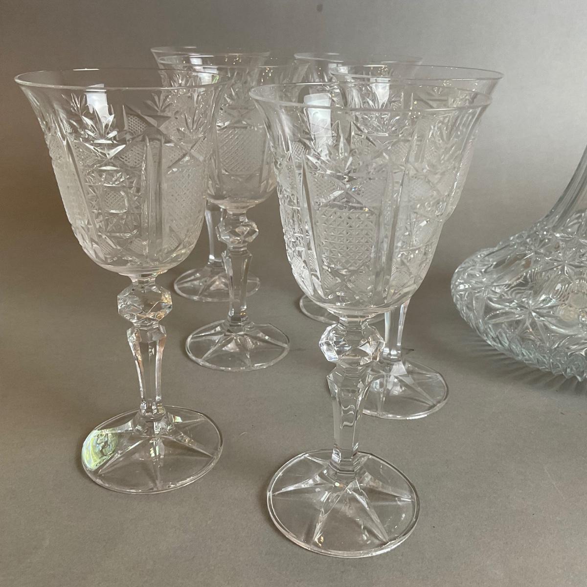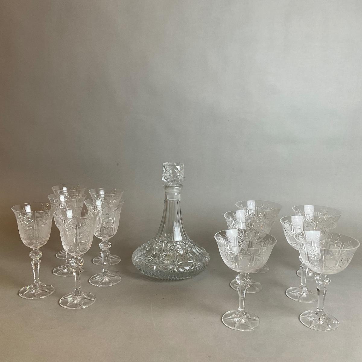 Beautifully cut crystal wine goblets . 6 white and 6 red with glass decanter