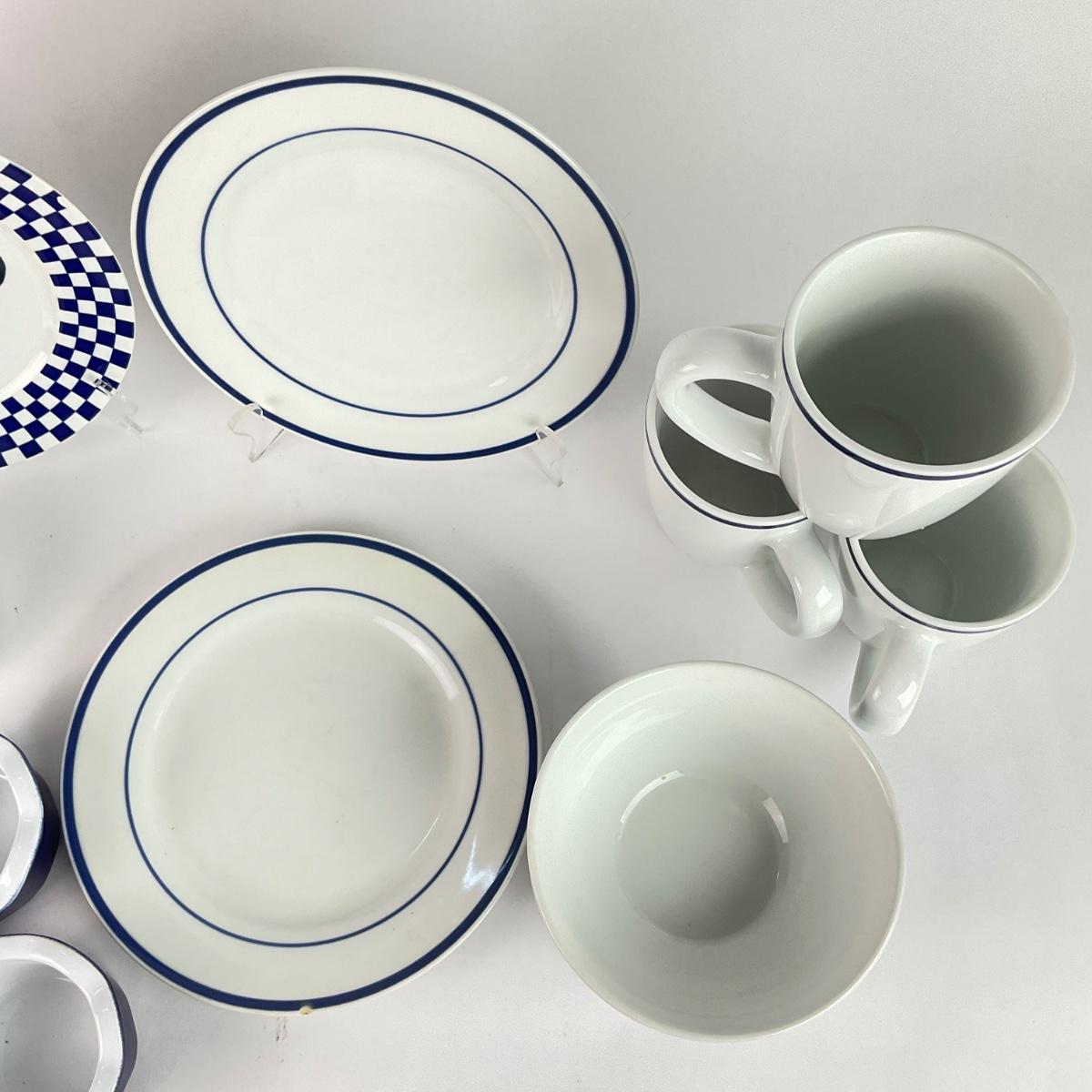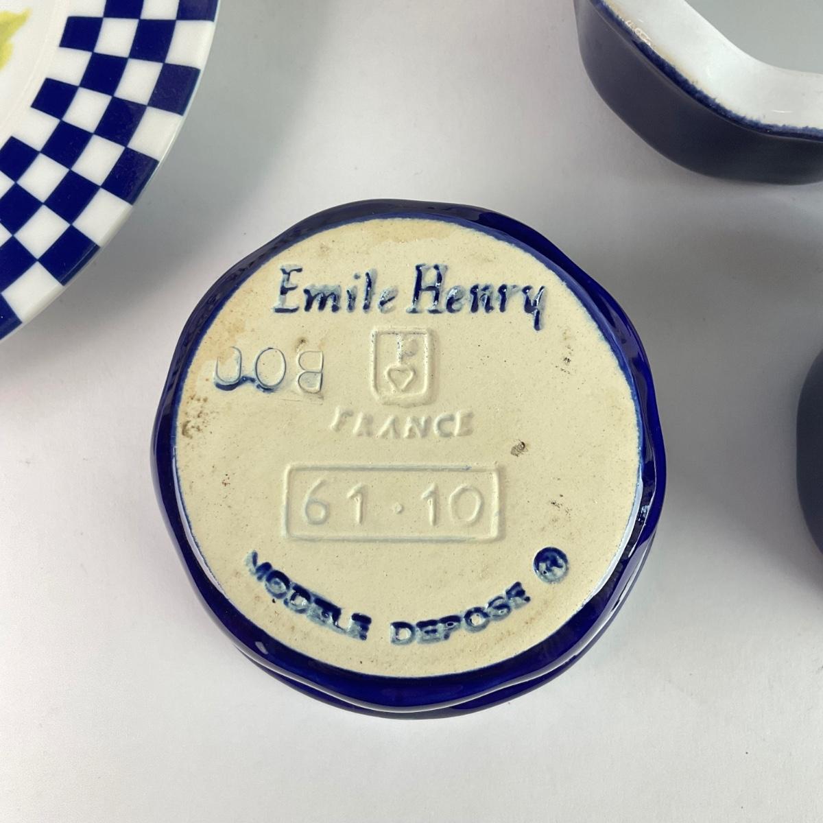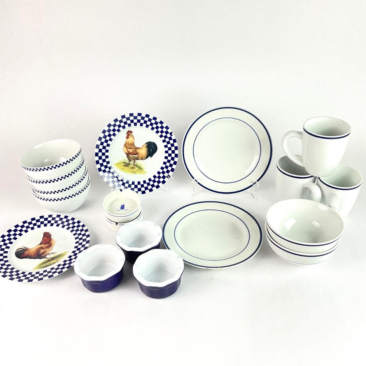 Includes Emile Henry Souflét Quantity 3, William Sonoma 2 plates and 4 bowls, maitre d' by Oneida 2 plates, 3 mugs, and 2 bowls. One Oneida plate is chipped please refer to photos