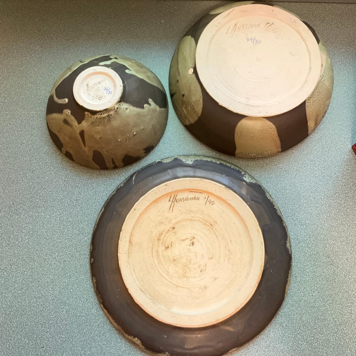K900 Set Of Three Vintage Henselmann Signed Art Pottery