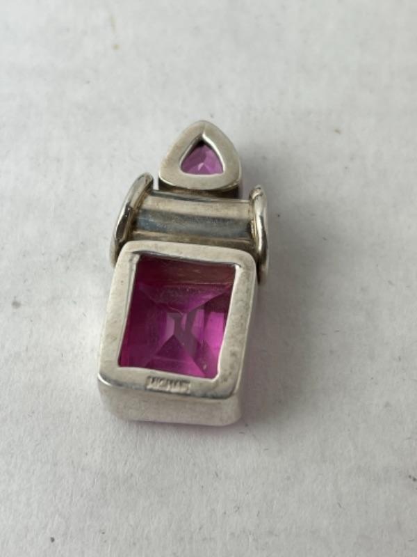 K919 Sterling Pink Quartz Pendant /Slide with 3 Stacking Rings