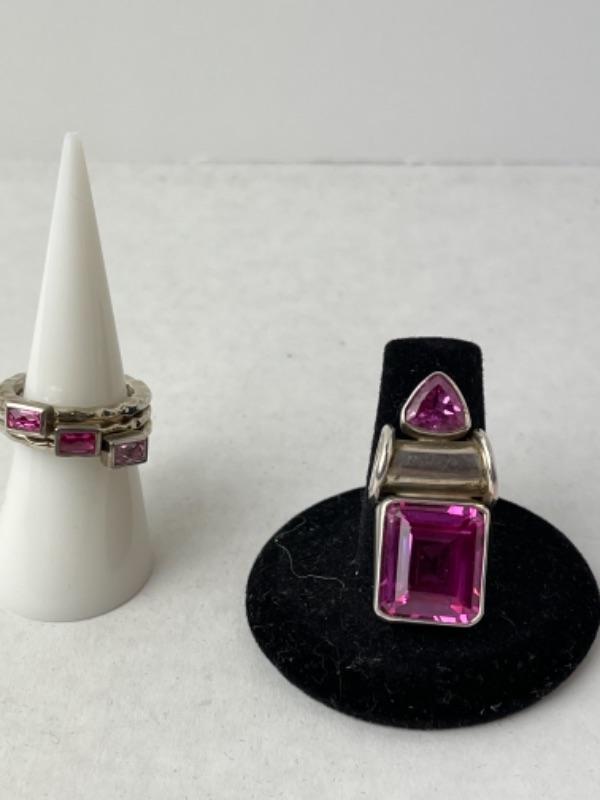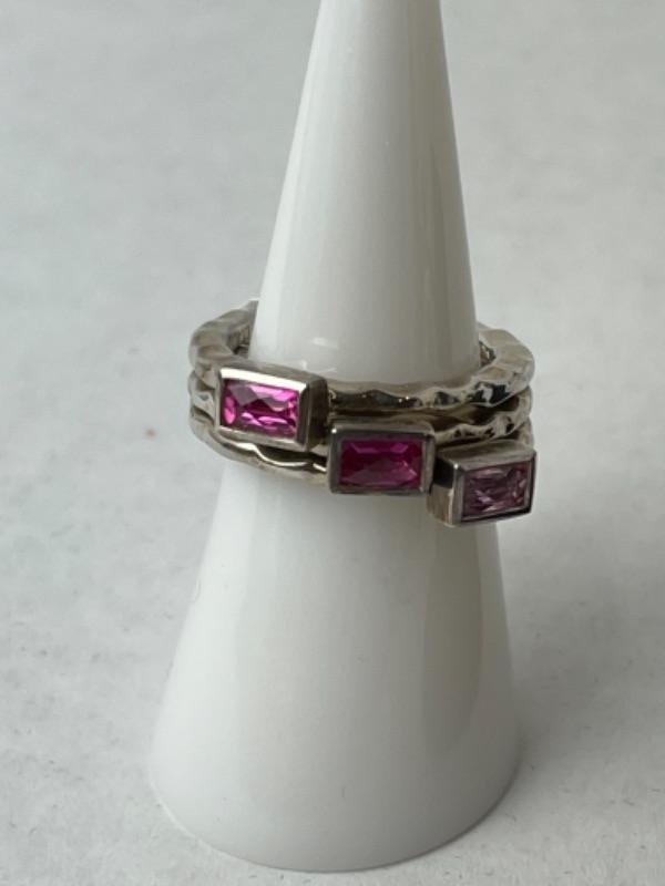 K919 Sterling Pink Quartz Pendant /Slide with 3 Stacking Rings size 6