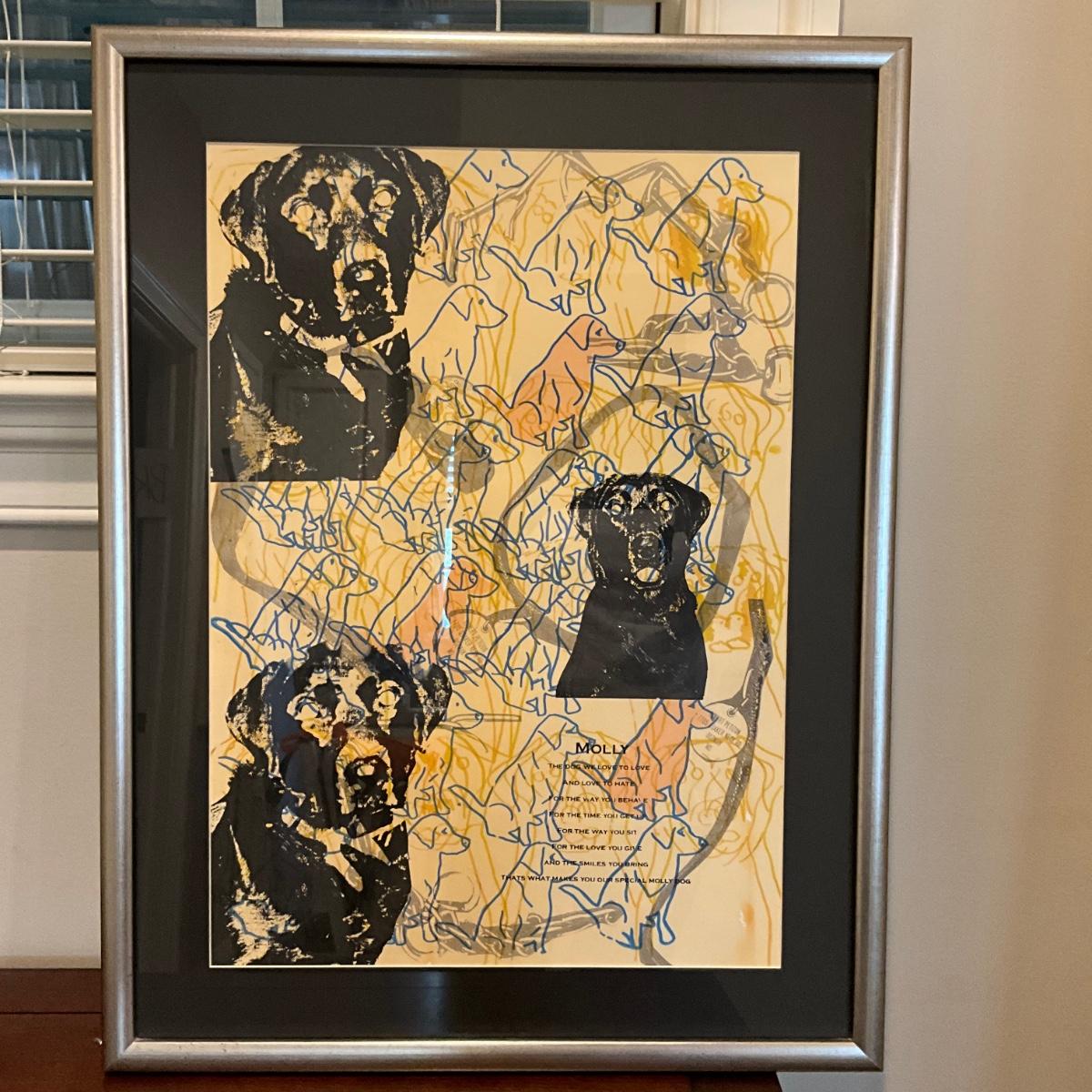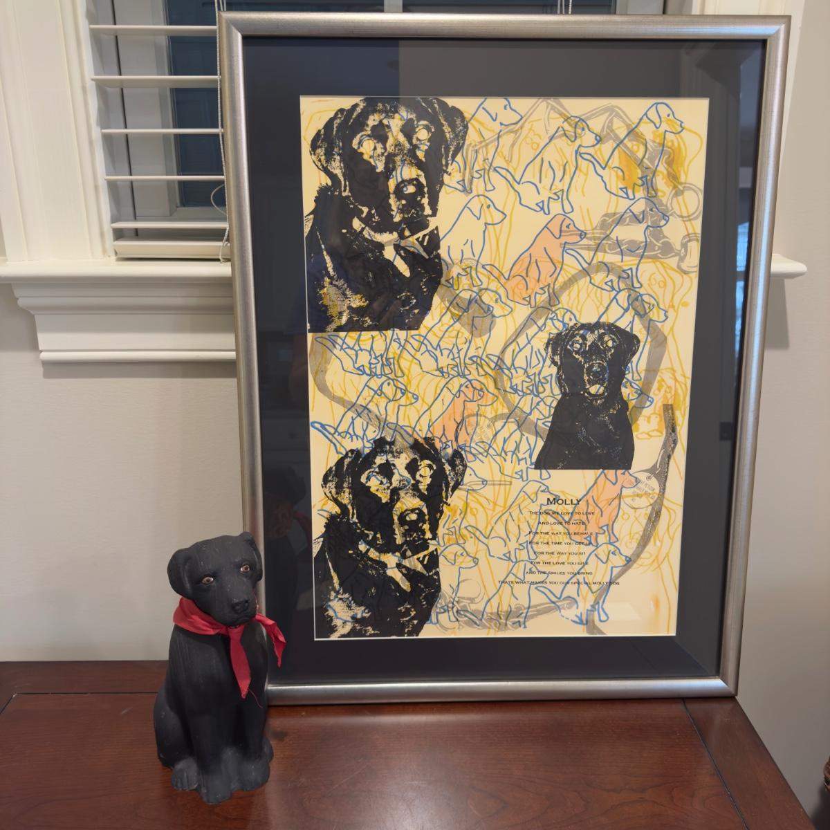 K922 Black Lab Mixed Media "Molly" Framed Artwork