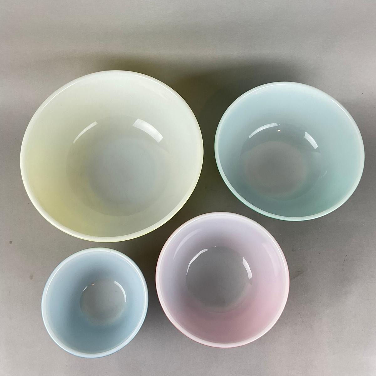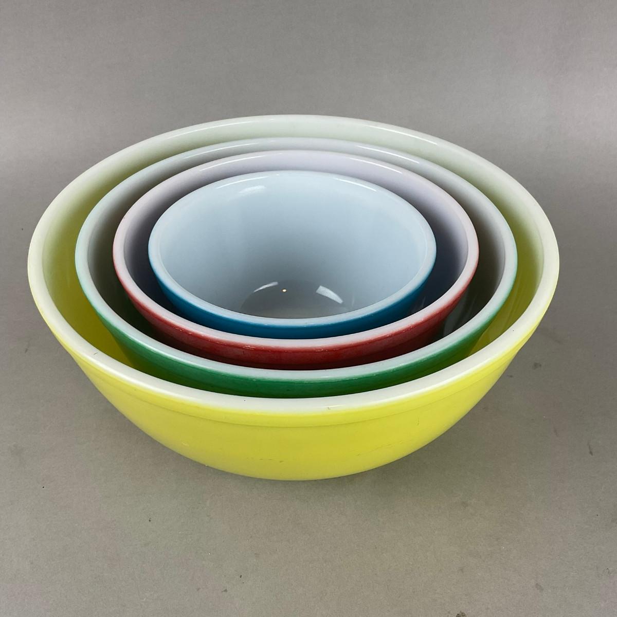 K924 Set Of Four Vintage Colored Pyrex Mixing Bowls