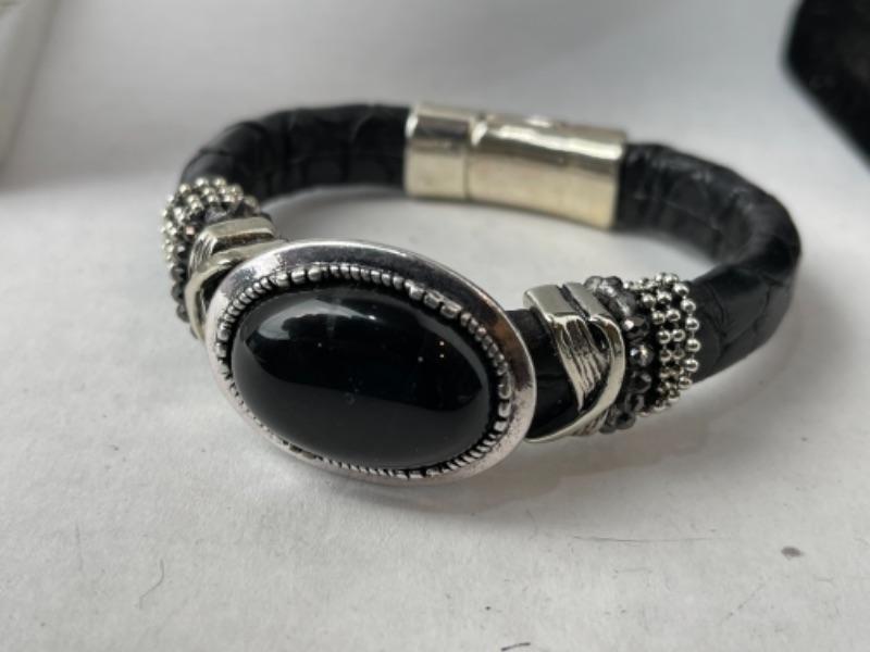 K941 Sterling Black Leather Necklace Lot