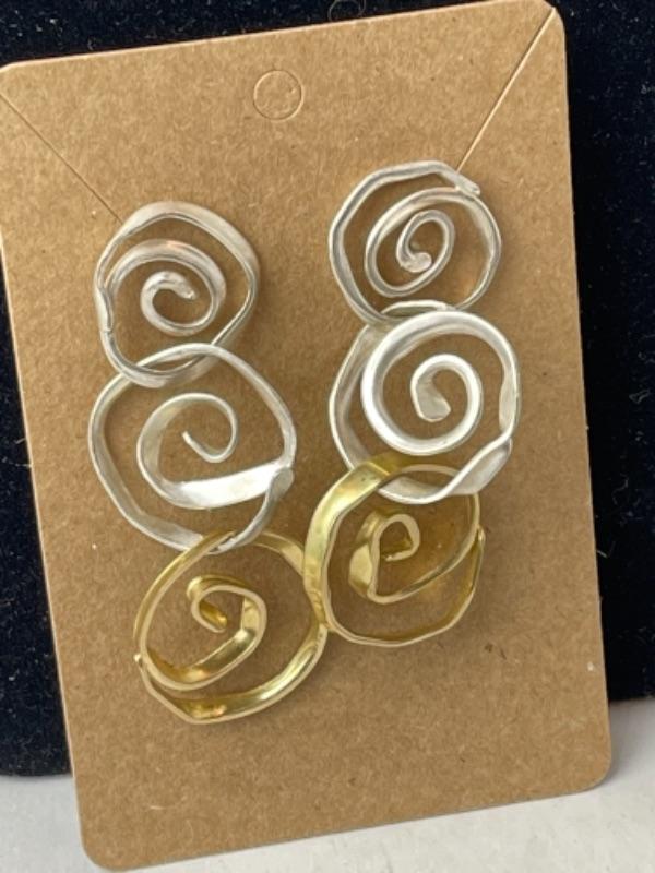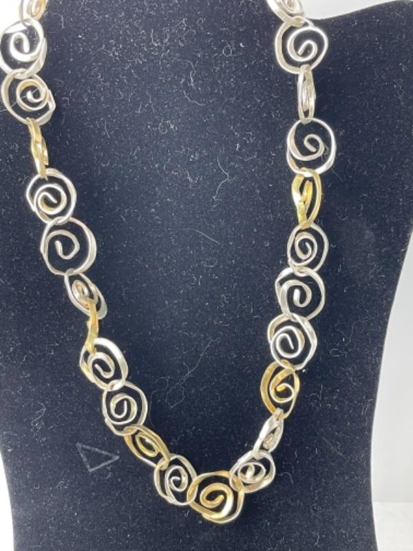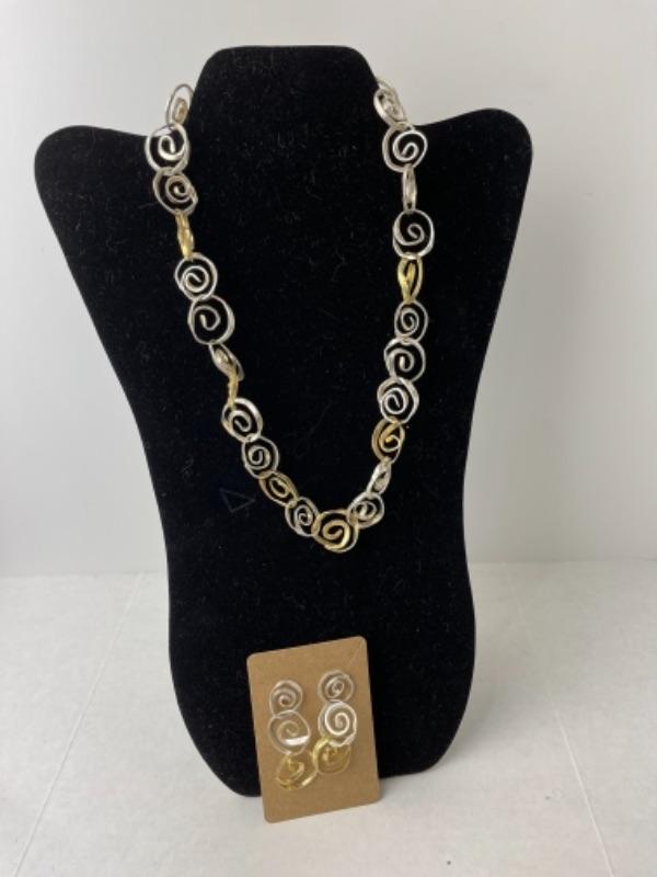 K946 Silver and Gold tone Artisan Made Necklace Earring Set