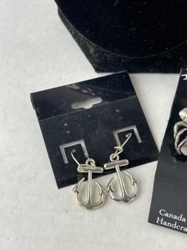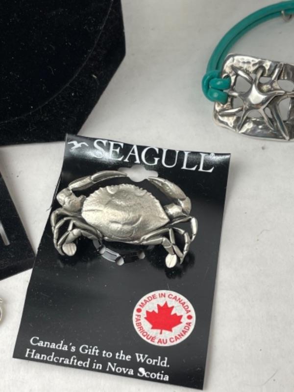 Seagull pewter crab pin with starfish bracelet and anchor earrings
