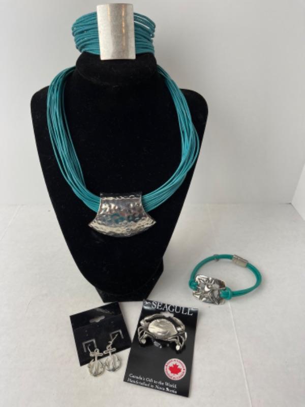 K947 Turquoise Leather Silver tone Jewelry Lot