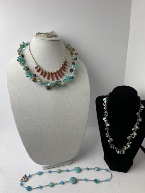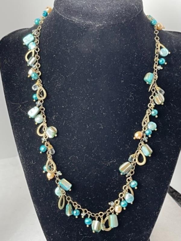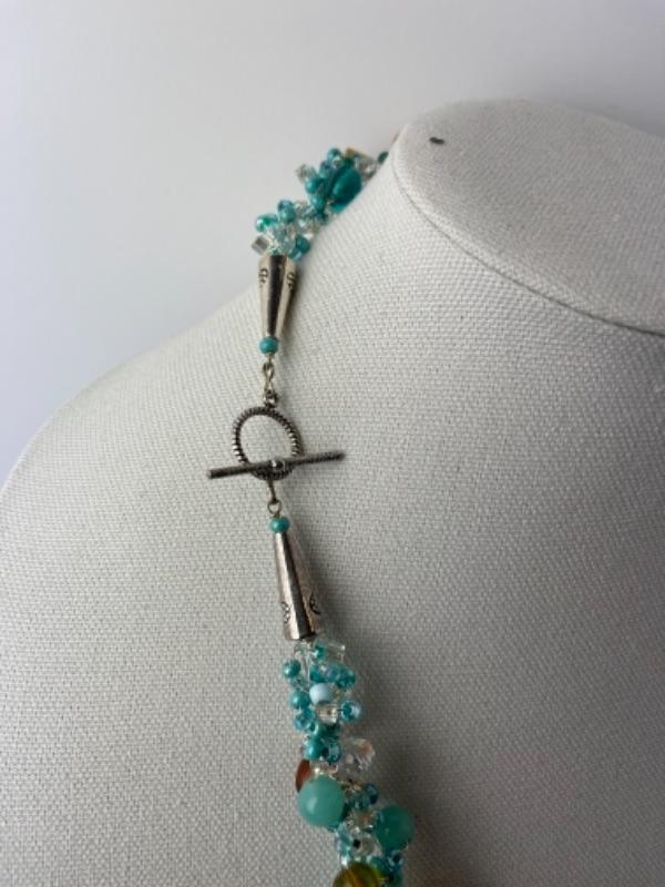 K949 Artisan Aqua blue Glass Beaded Necklace and Alex & Ani Bracelet