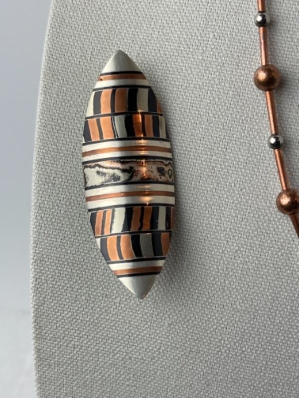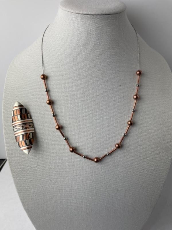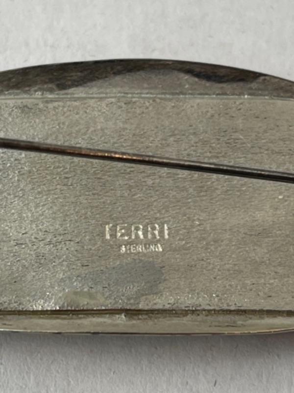Necklace measures 22 inches long, pin is 3 inches long and 1 inch high and is marked Terri, Sterling