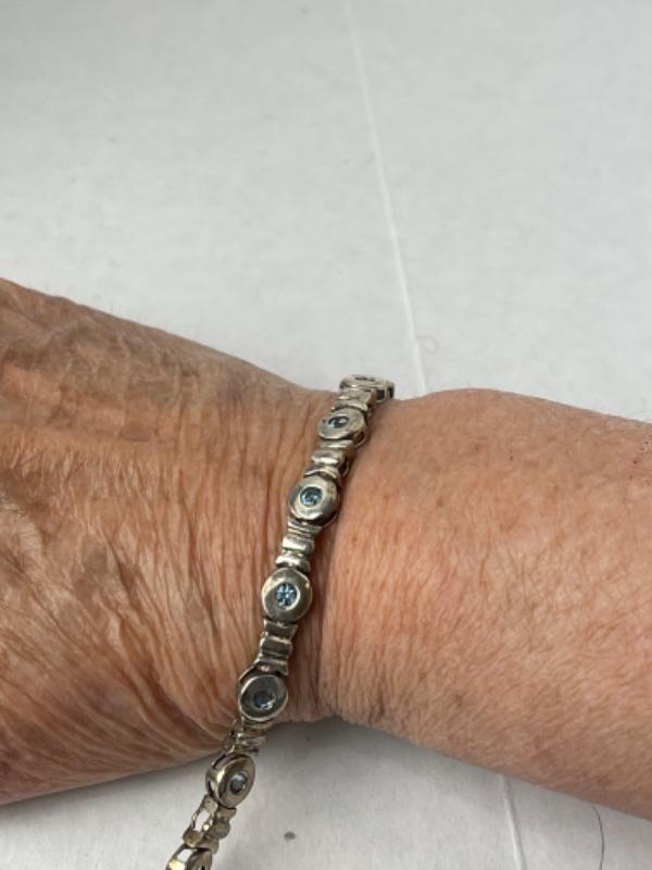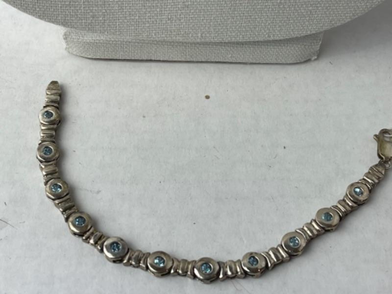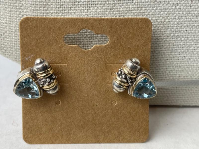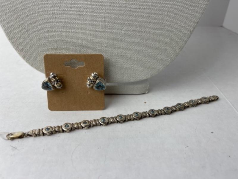 K952 Sterling /14k Yellow Gold Blue Topaz Earrings and Bracelet Set