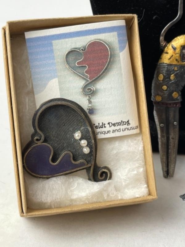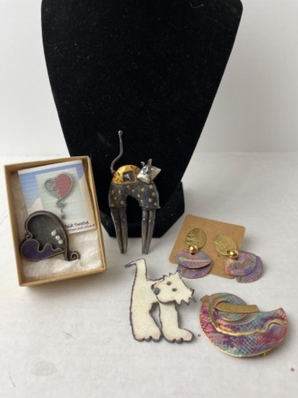 Sterling heart pin with cat and do pin with paste pin and earring set
