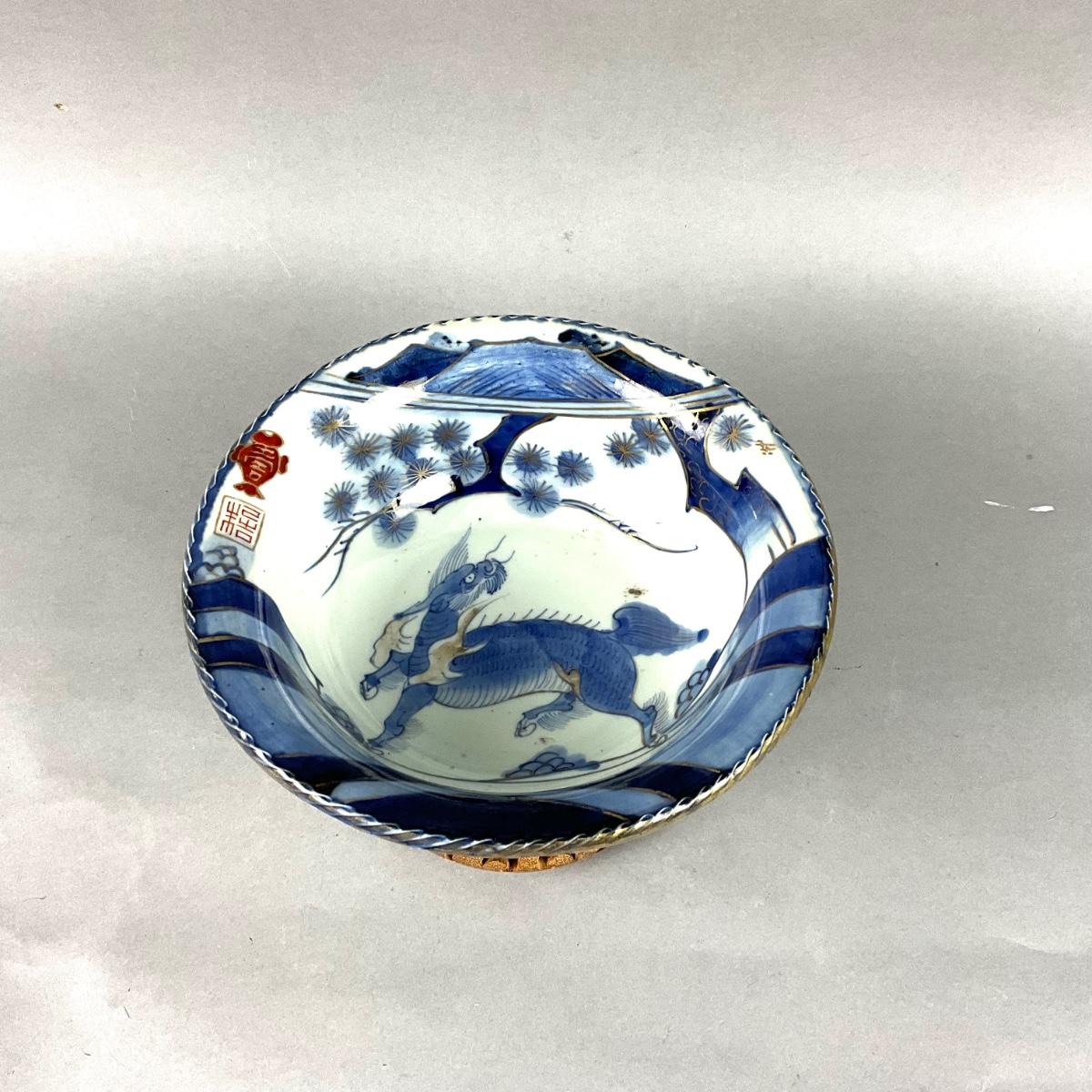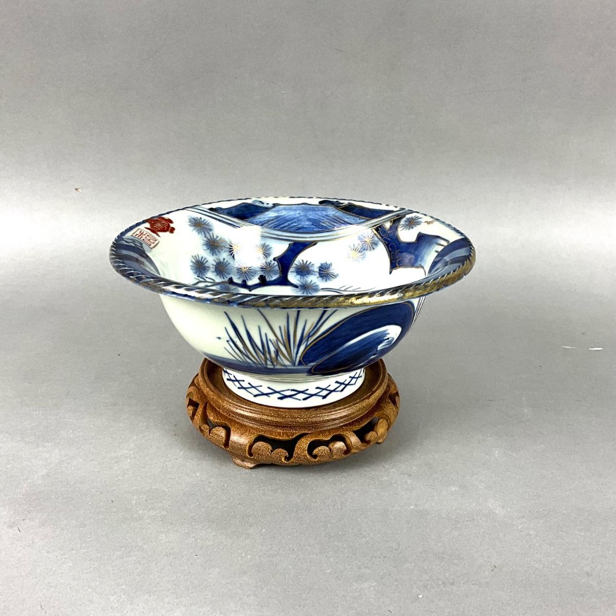 K958 Antique Blue and White Imari Chinese Bowl on Stand