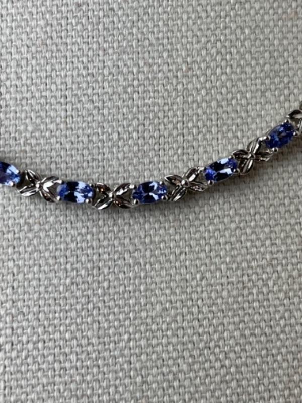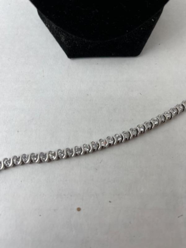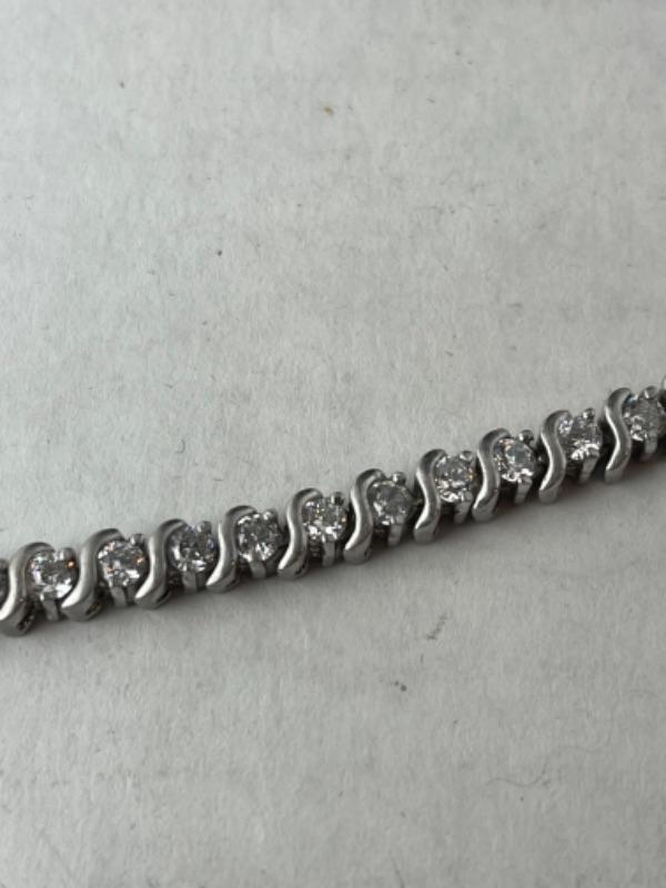 K959 Sterling CZ Amethyst Necklace and CZ Tennis Bracelet measures 7.5” long and marked 925