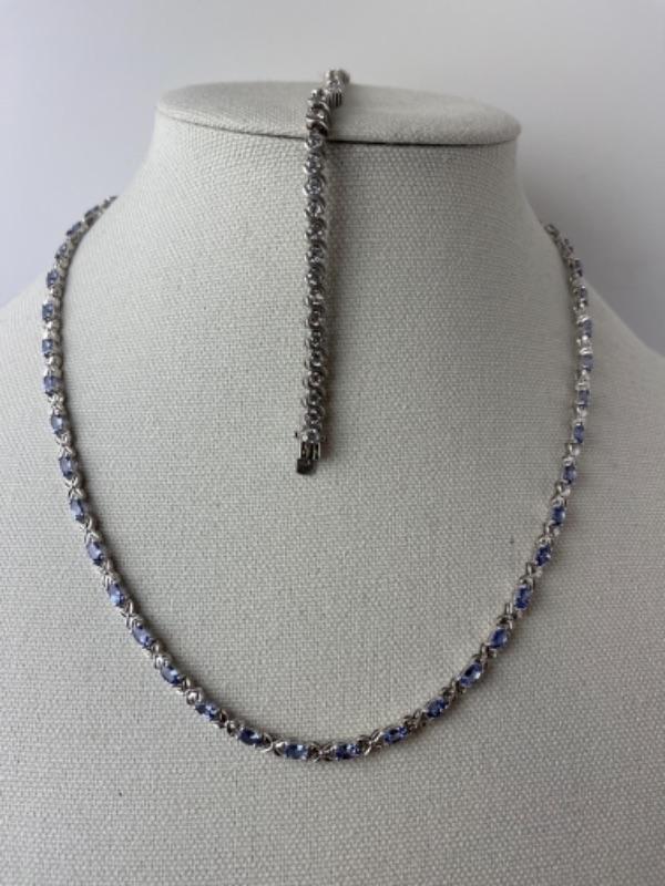 K959 Sterling CZ Amethyst Necklace and CZ Tennis Bracelet