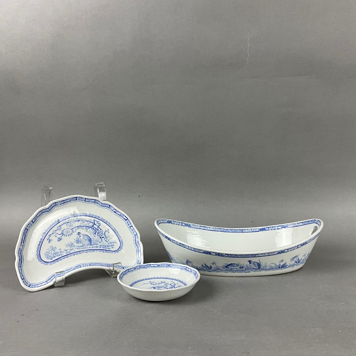 K960 Set of 3 Serving Pieces of Furnivals Quail China