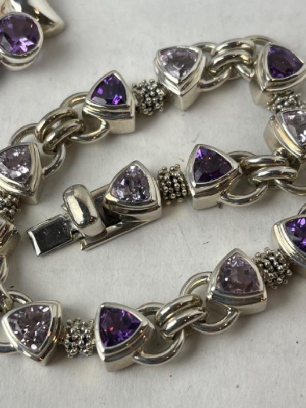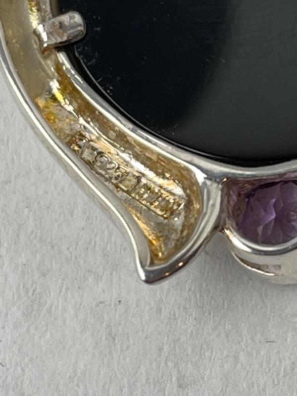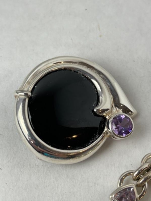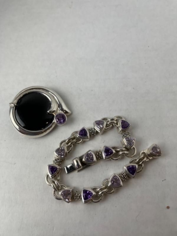 K960 Sterling Black Onyx, Amethyst, Pin Bracelet Set