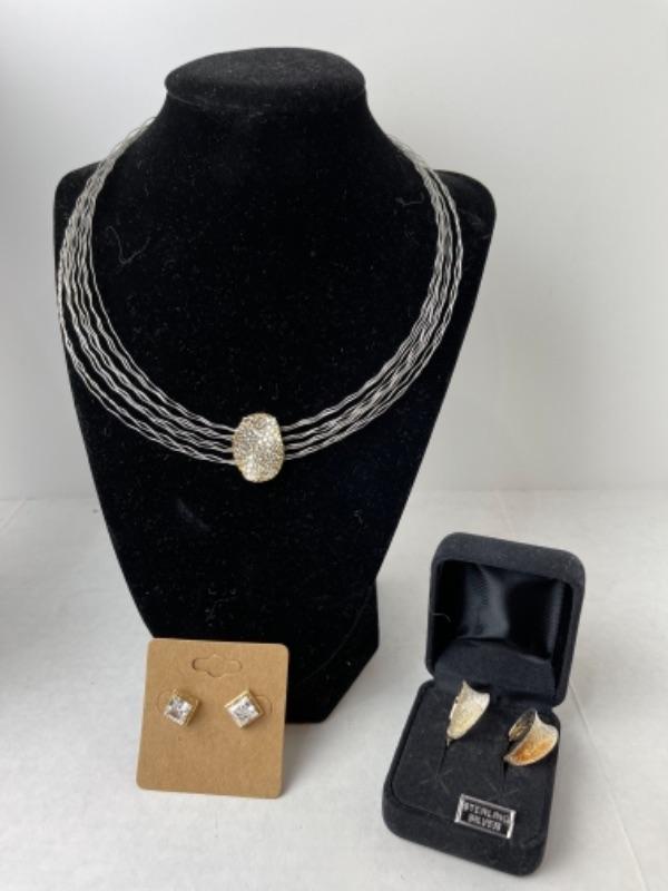 K963 Artisan Necklace, 14k Diamonique CZ Earrings Lot
