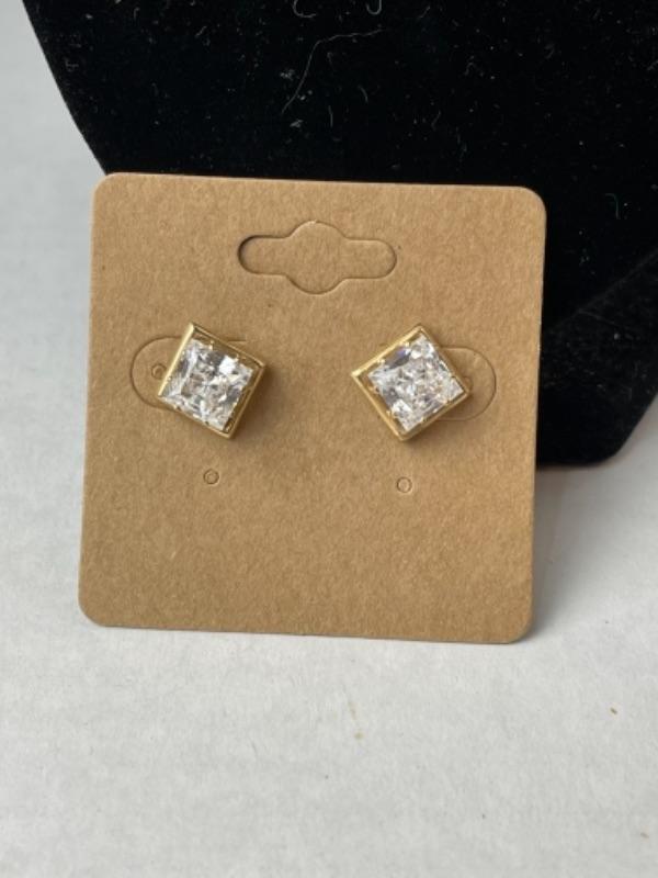 Sterling hoops and CZ pendant necklace by seasonal whispers with 15k yellow gold Diamonique CZ Earrings