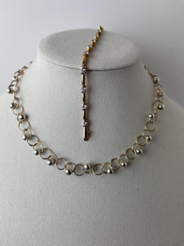 K969 Sterling Gold Filled Ball Necklace and CZ Bracelet