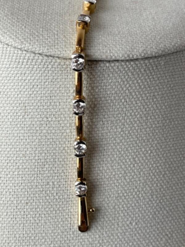 Bracelet is marked 925 CZ and measures 8” long with gold overlay