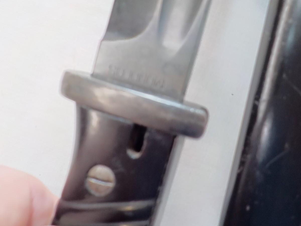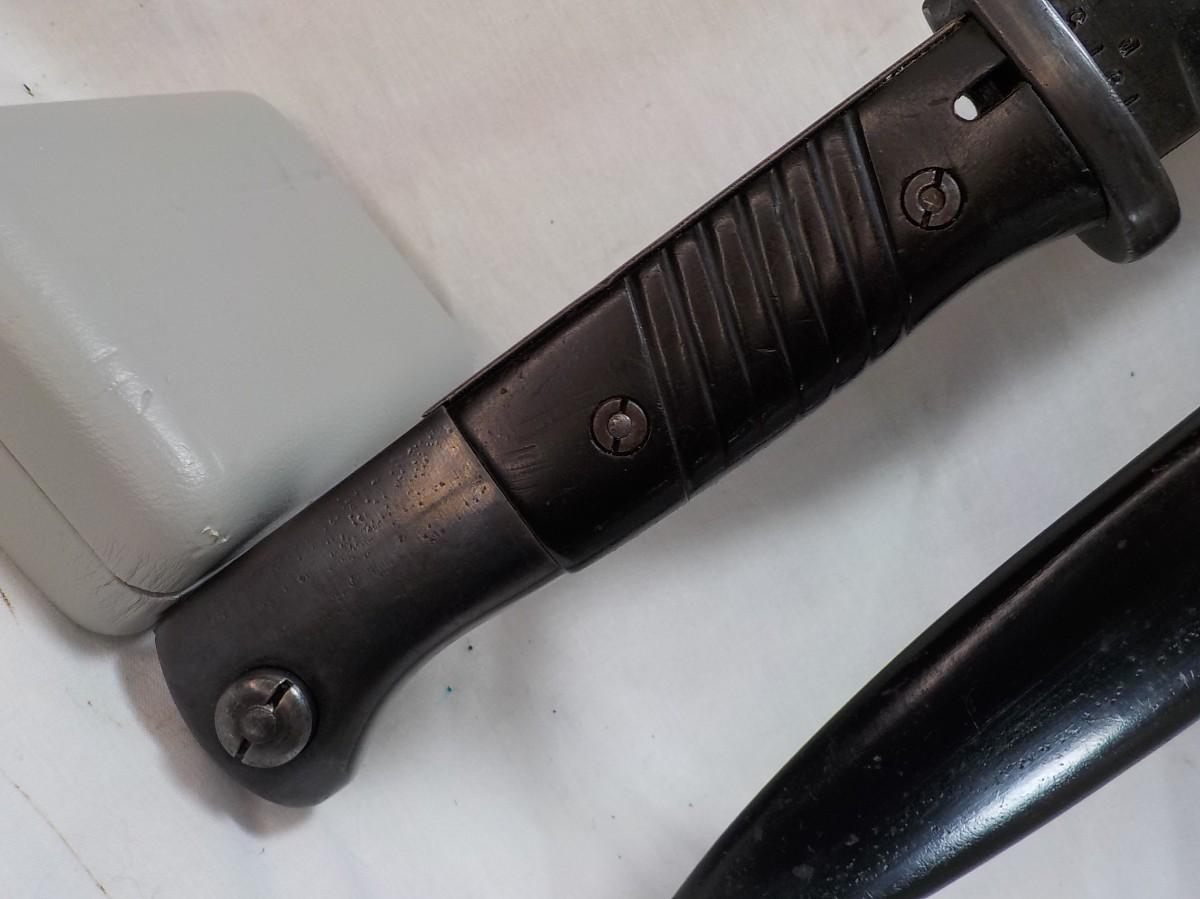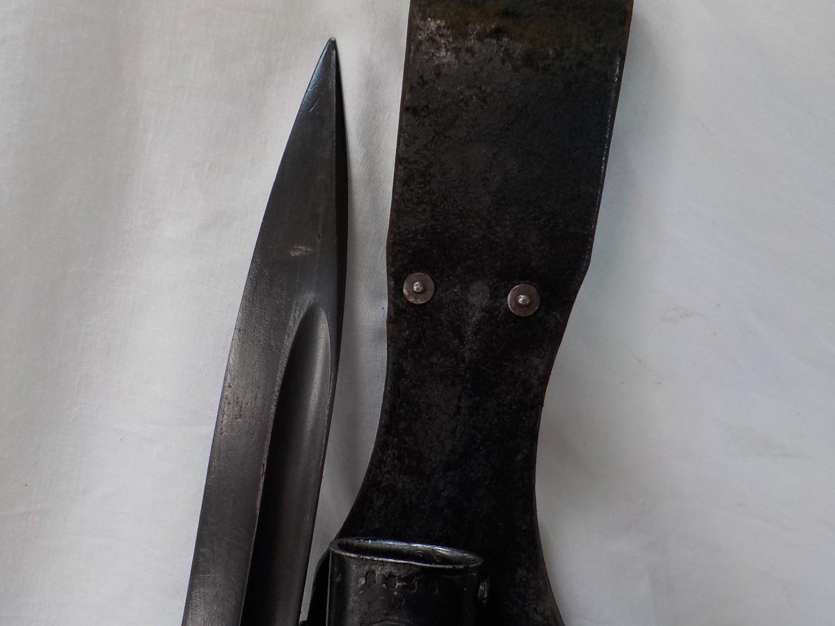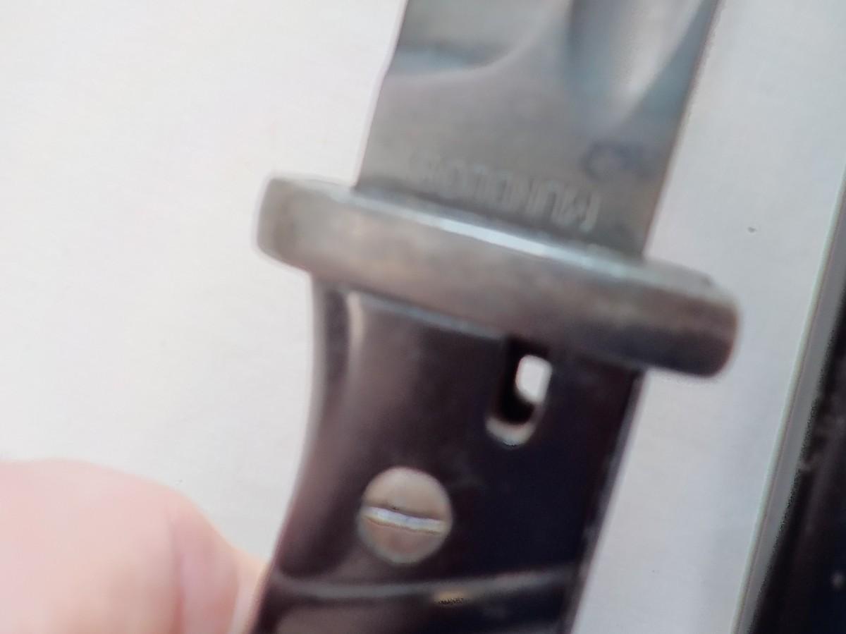 Bayonet 12 in and marked, on blade WW2 blade in excellent condition.