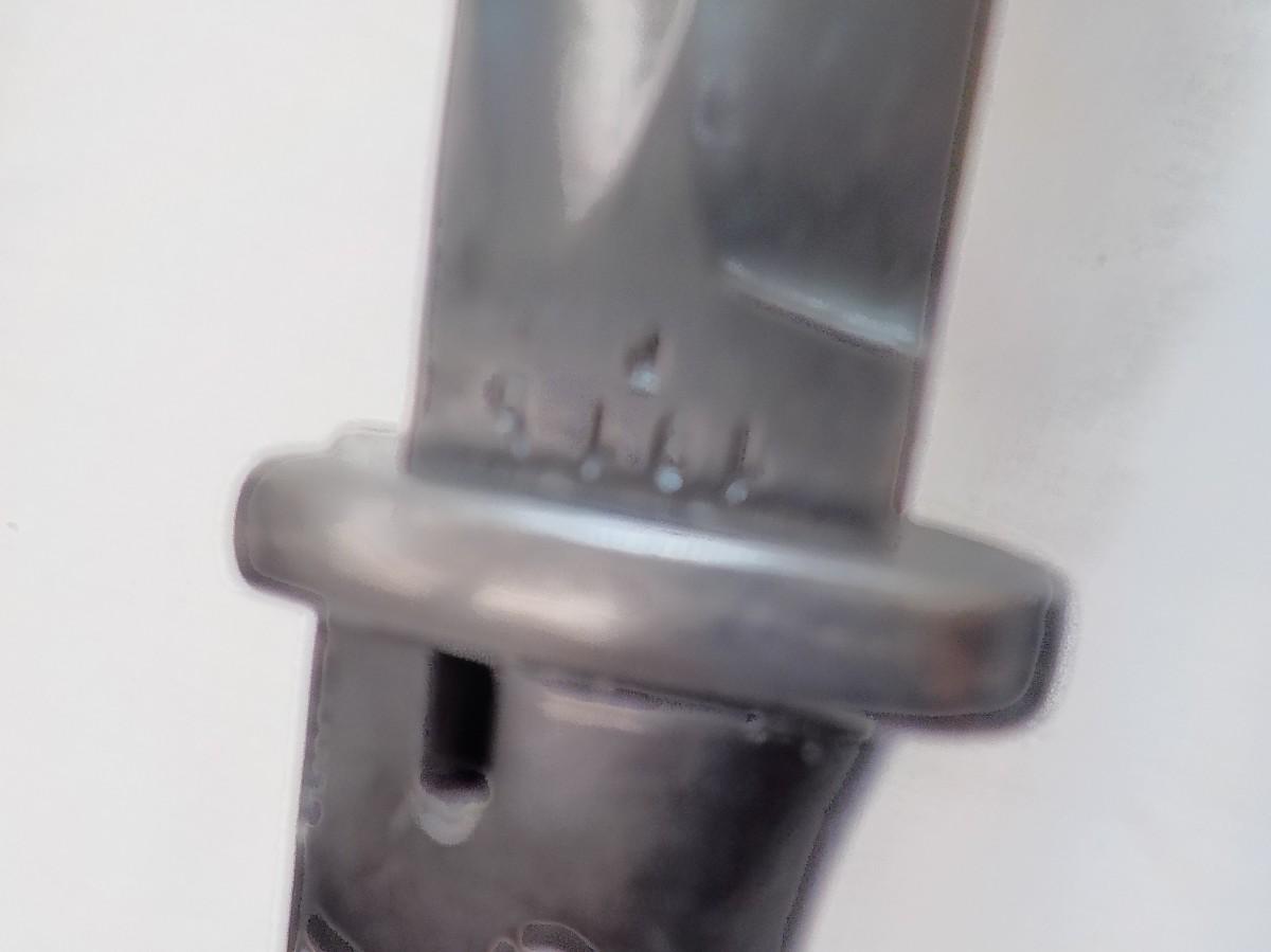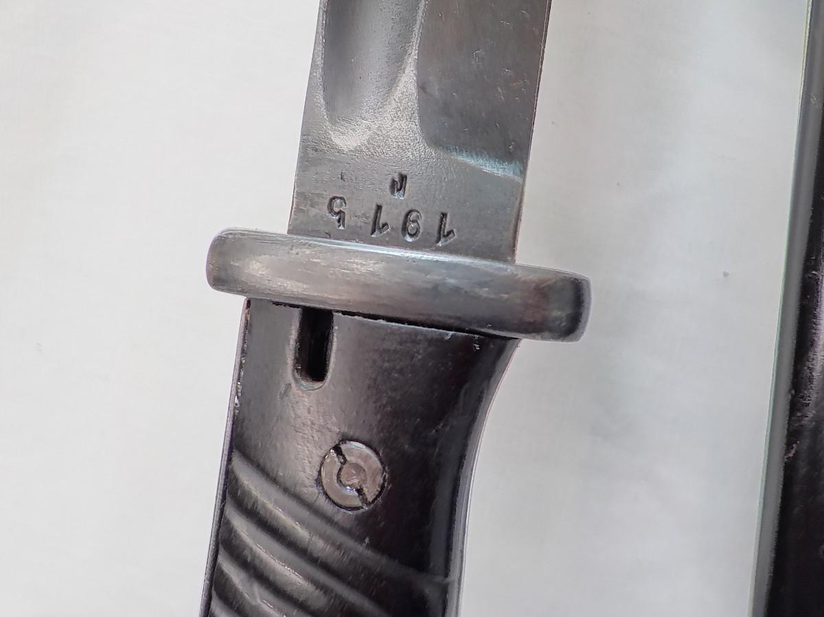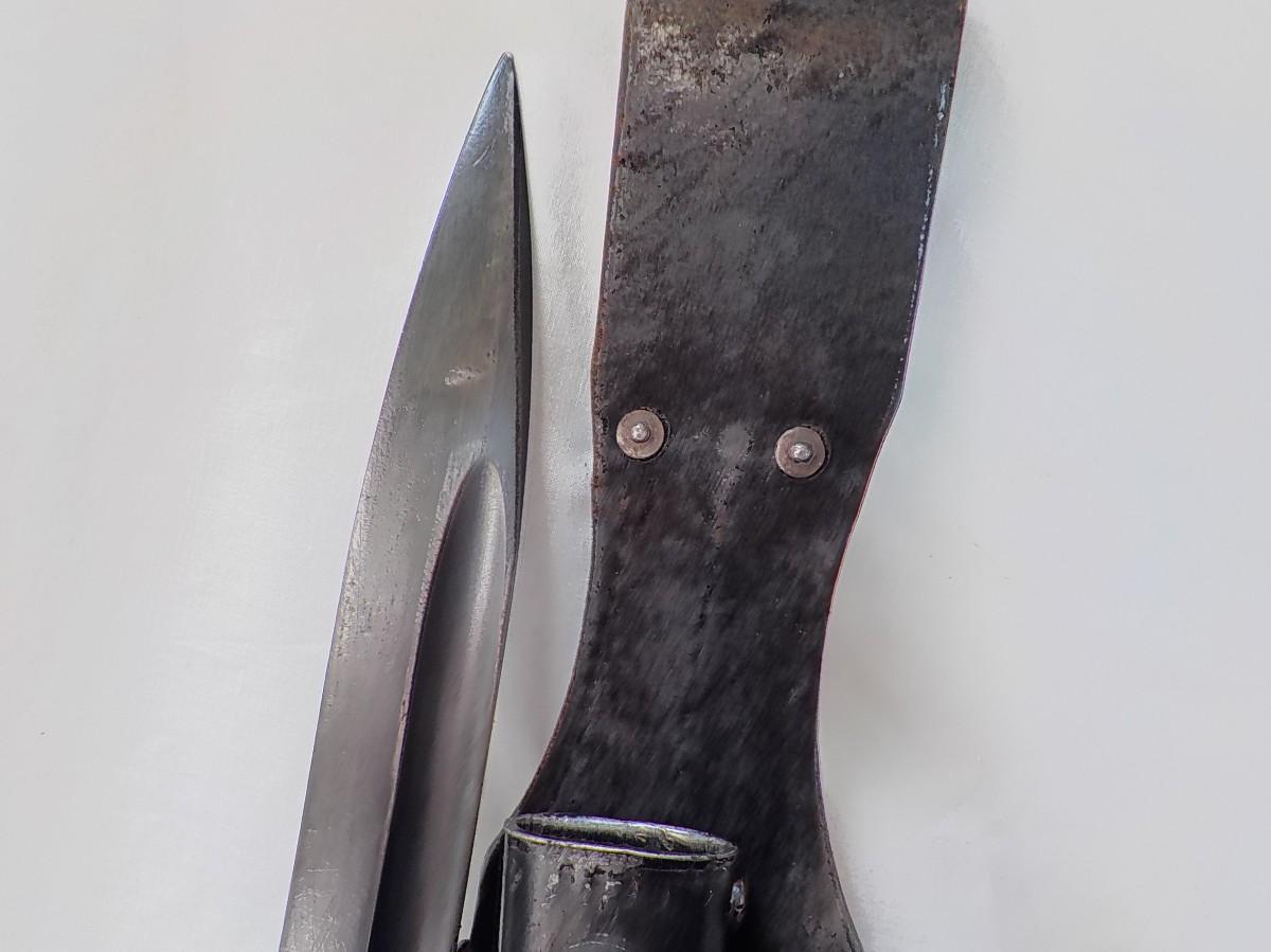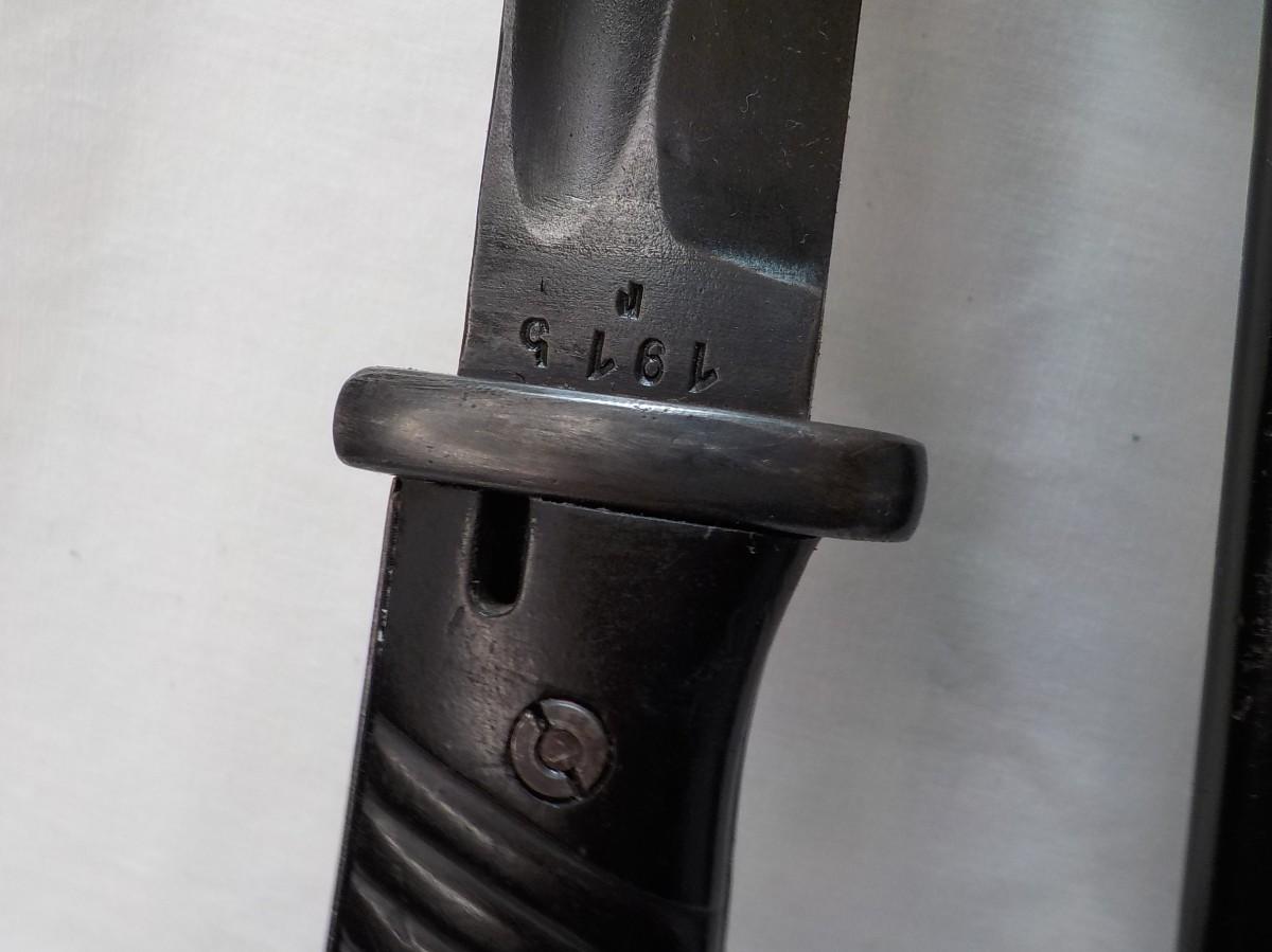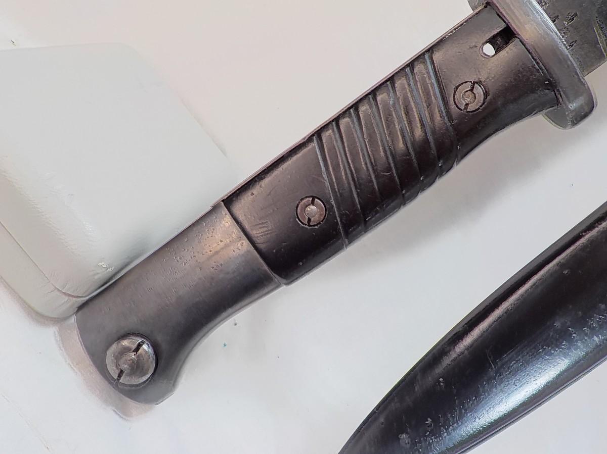 Bayonet 12 in and marked, on blade WW2 blade in excellent condition.