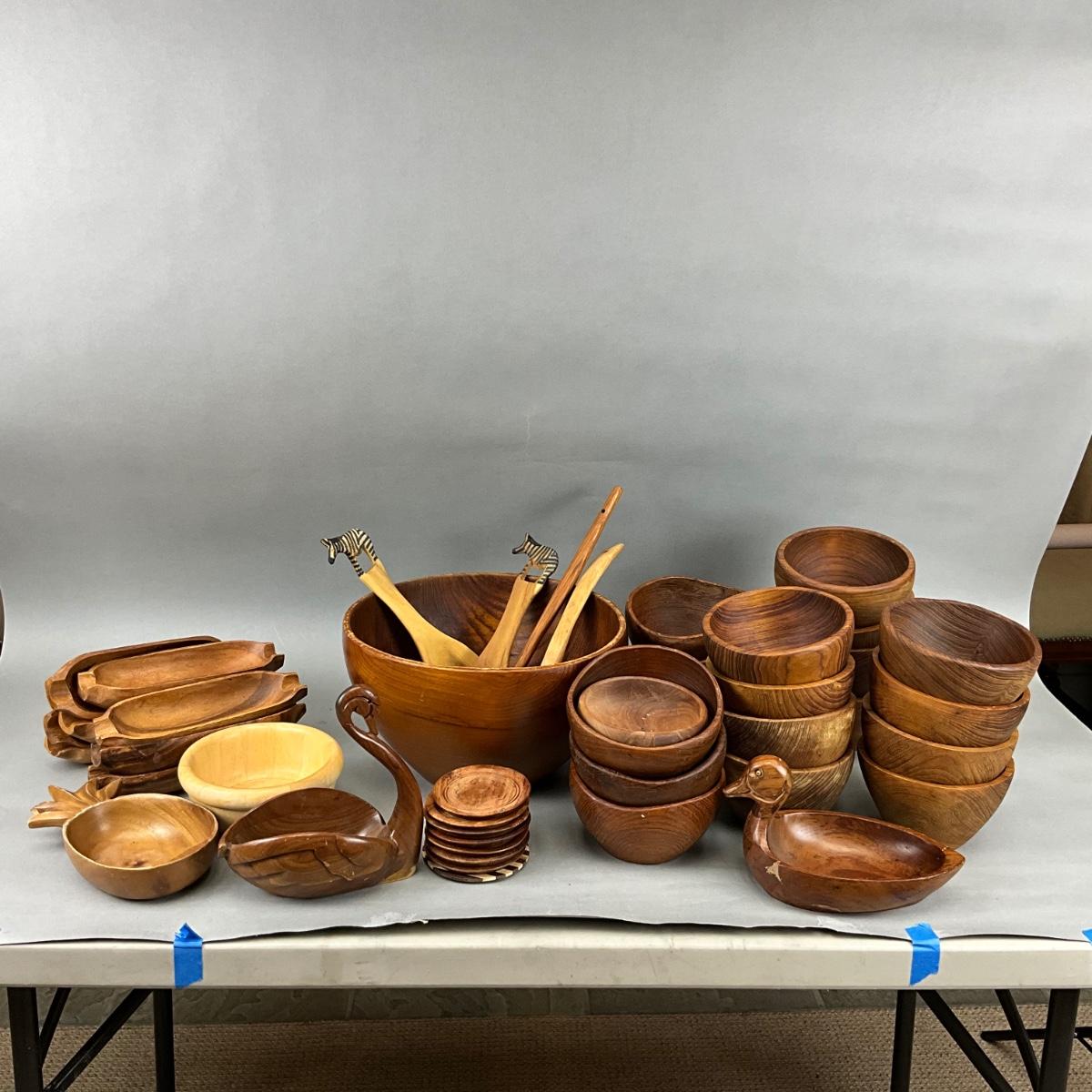 K989 Wooden Salad Bowl Set with Serving Accessories